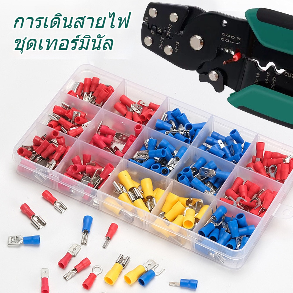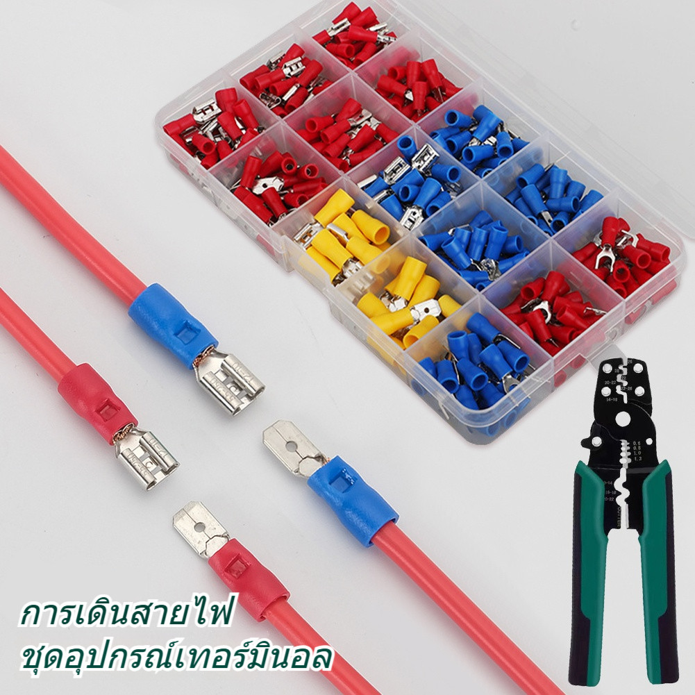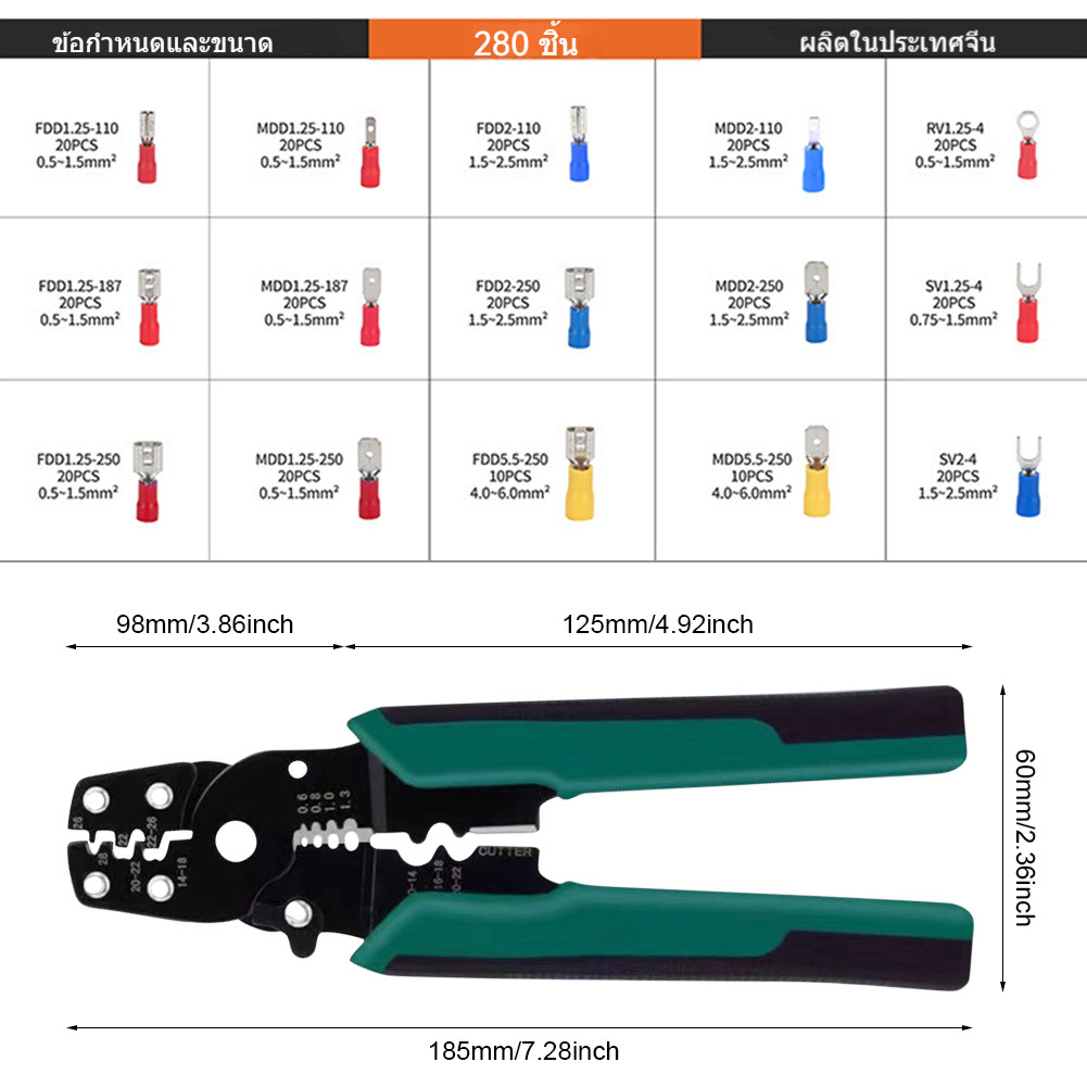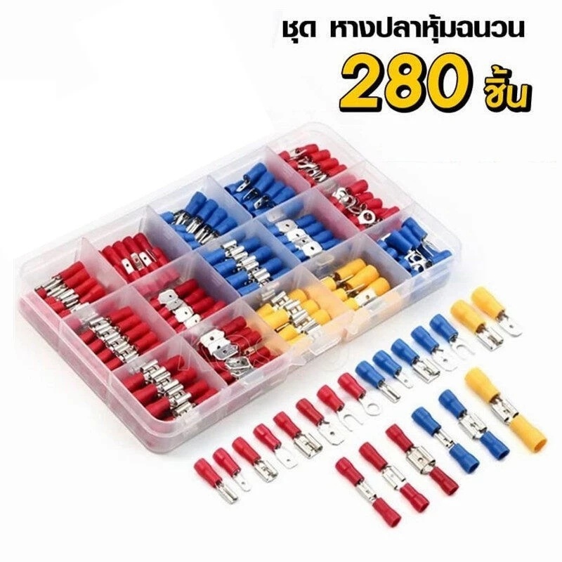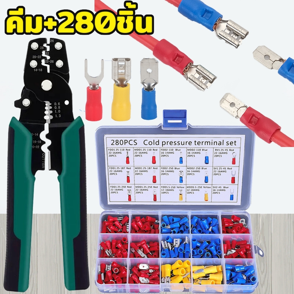 ชุด 280 ชิ้น + โมงคีม ชุดหางปลาคละแบบ ขั้วต่อสายไฟฟ้าหุ้มฉนวน เชื่อมต่อสายไฟ คีมปอกสายไฟ คีมตัด 5 in 1