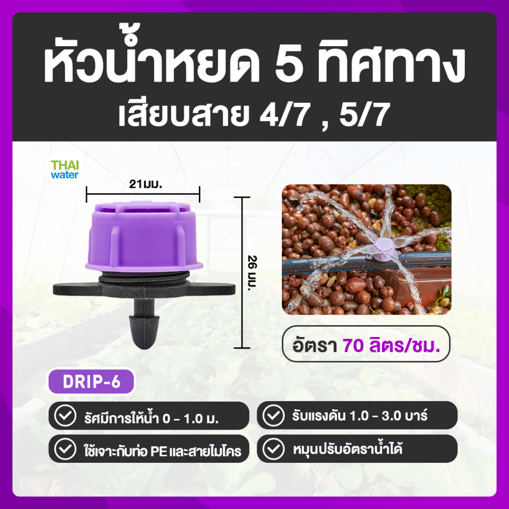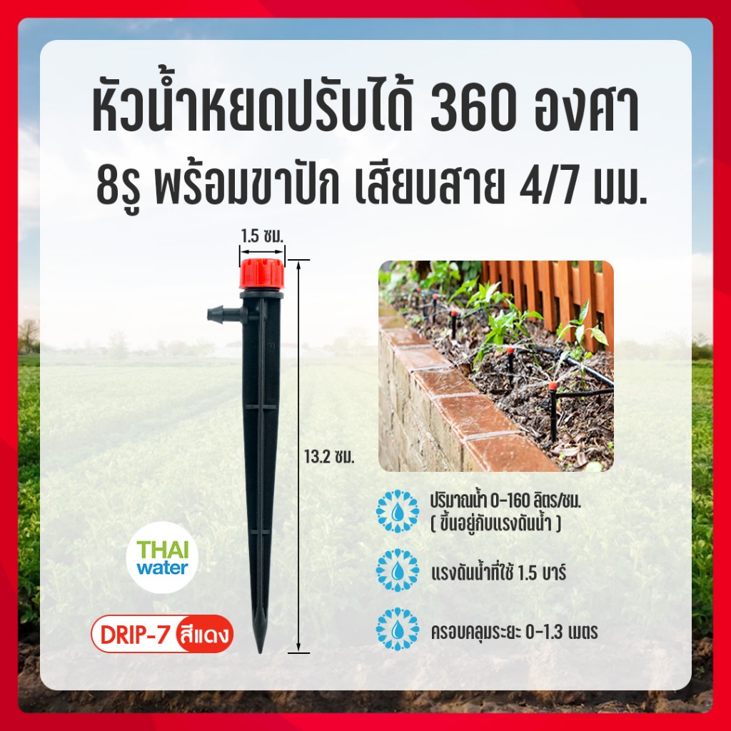 หัวน้ำหยด หัวน้ำหยดปรับได้ น้ำหยด สายไมโคร4/7 THAI WATER