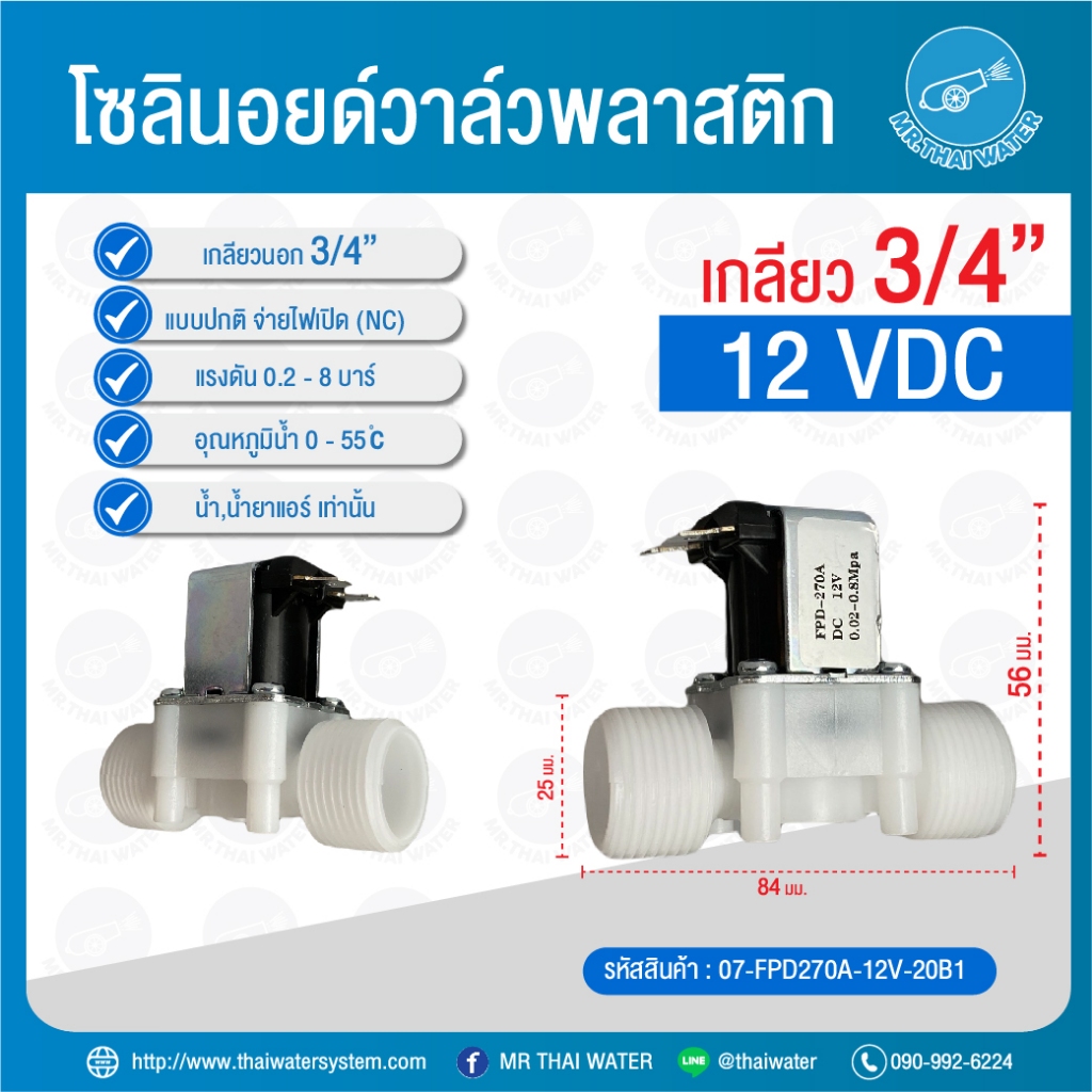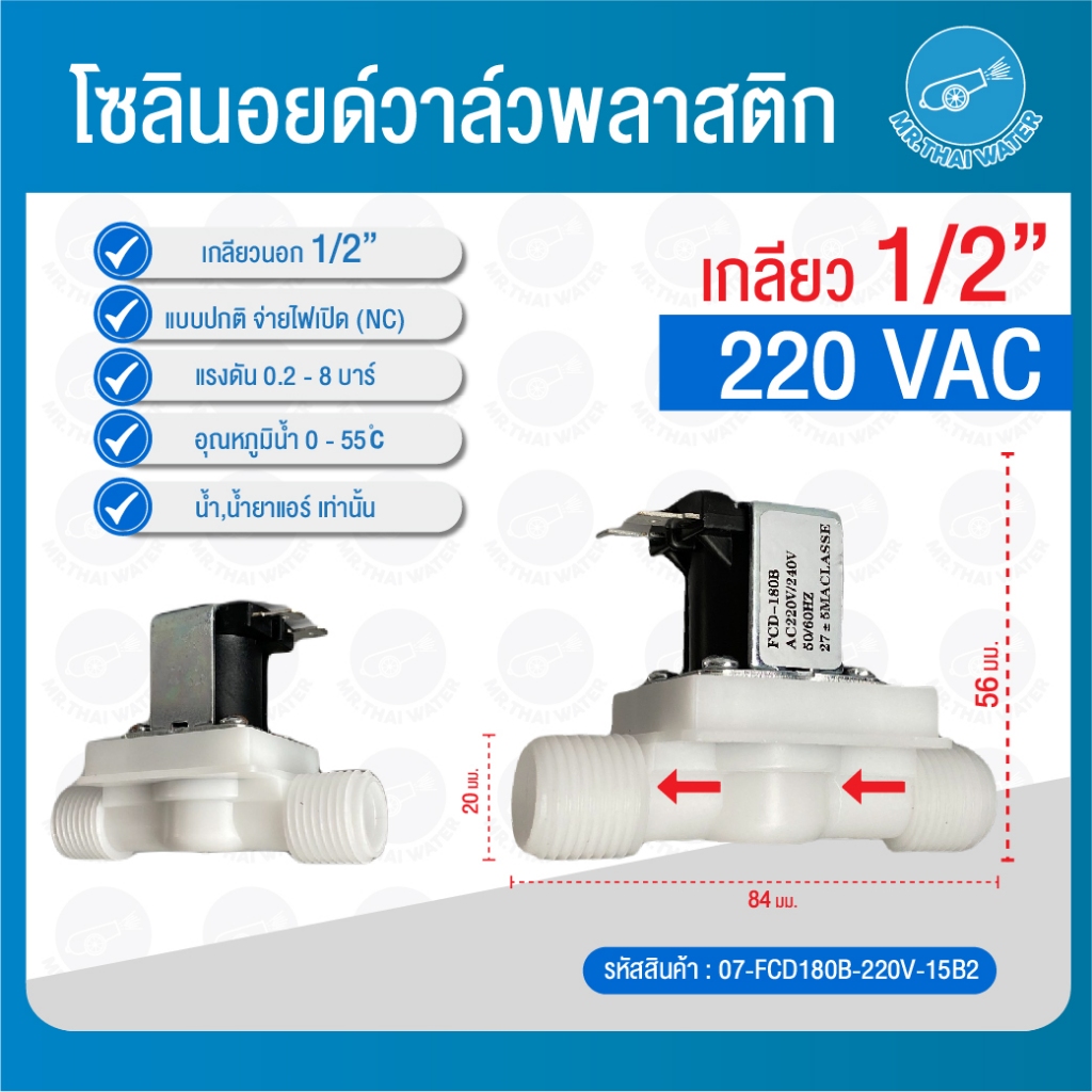 Solenoid valve โซลินอยด์วาล์ว วาล์วไฟฟ้า วาล์วน้ำ วาล์วลม วาล์วแก๊ส 12v 24V 220VAC