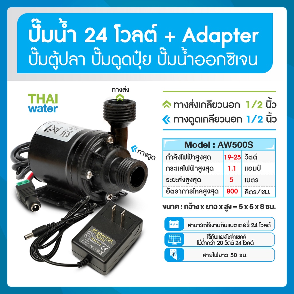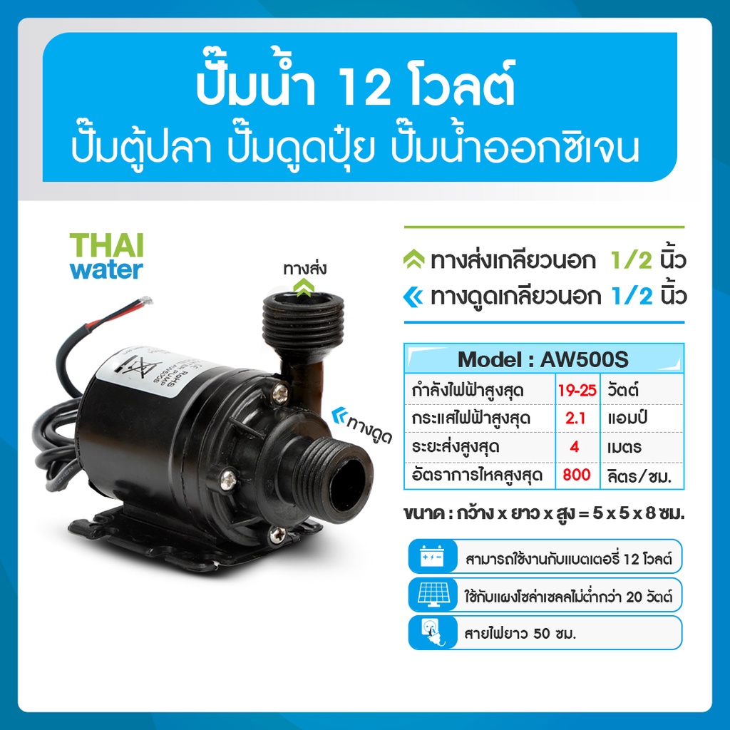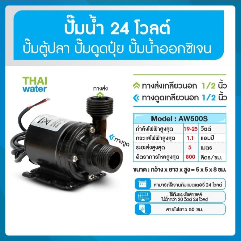 ปั๊มน้ำตู้ปลาแบบจุ่ม ปั๊มตู้ปลา ปั๊มตู้ปลา12V ปั๊มน้ำบ่อปลา ปั๊มดูดปุ๋ย DC12V DC24V AW500