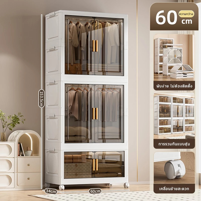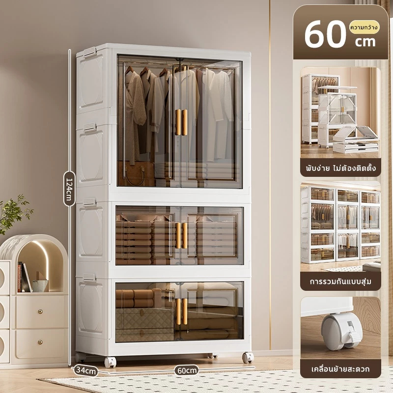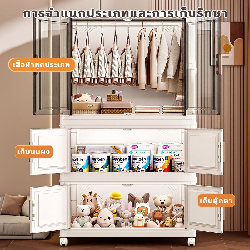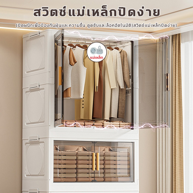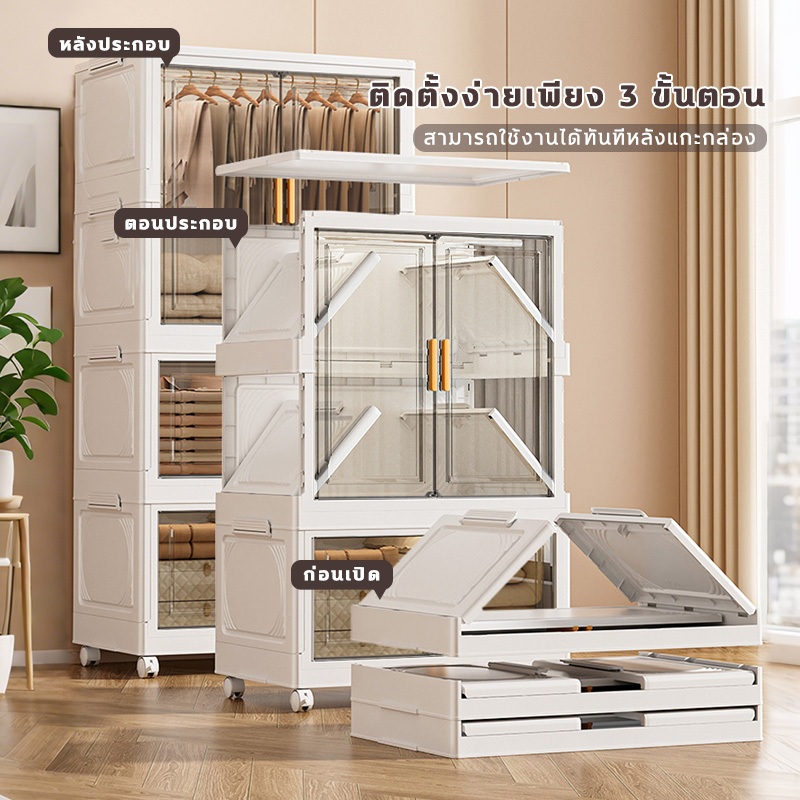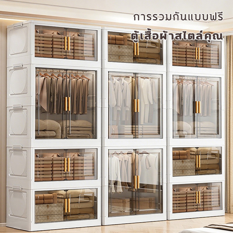 🔥COD🔥ตู้เสื้อผ้าพับ พับได้ ตู้เก็บของขนาดใหญ่ กันฝุ่นและกันน้ำ ตู้เสื้อผ้าเด็ก ชั้นเก็บเสื้อผ้า ติดตั้งง่าย สไตล์โมเด