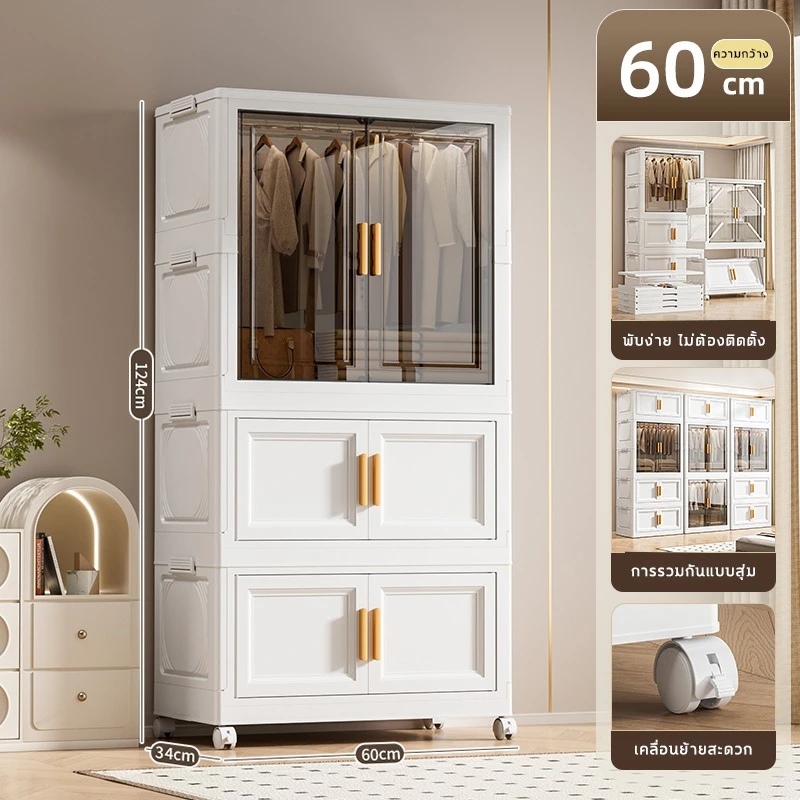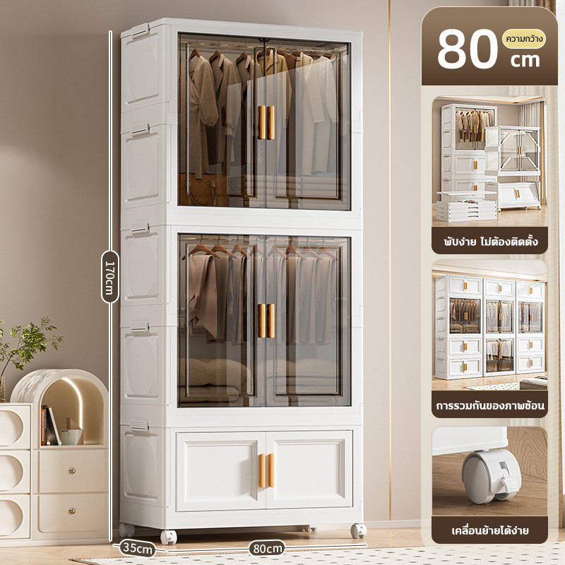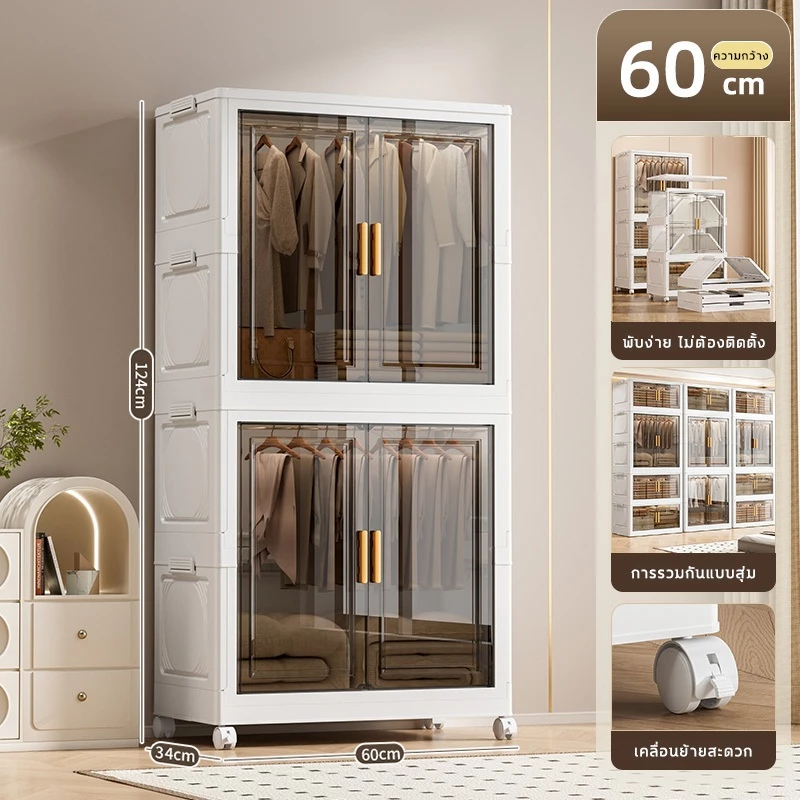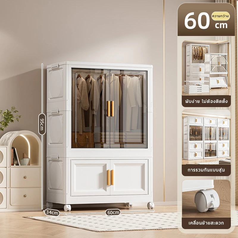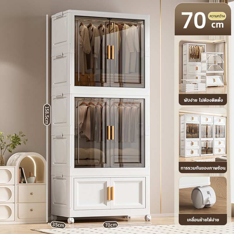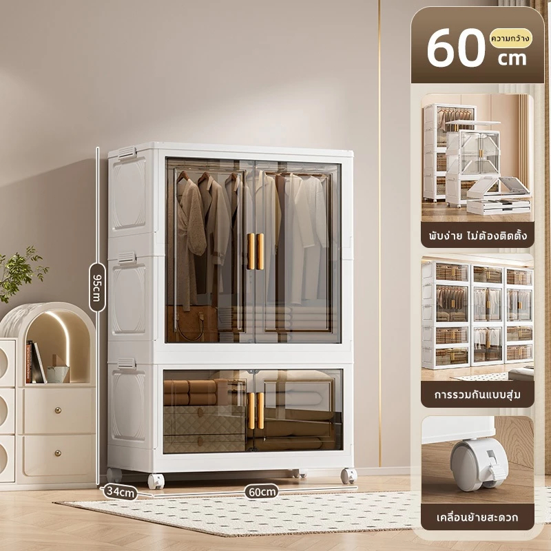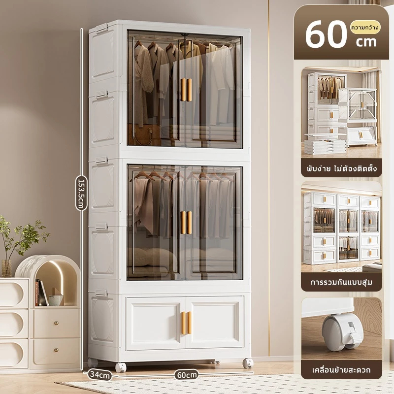 🔥COD🔥ตู้เสื้อผ้าพับ พับได้ ตู้เก็บของขนาดใหญ่ กันฝุ่นและกันน้ำ ตู้เสื้อผ้าเด็ก ชั้นเก็บเสื้อผ้า ติดตั้งง่าย สไตล์โมเด