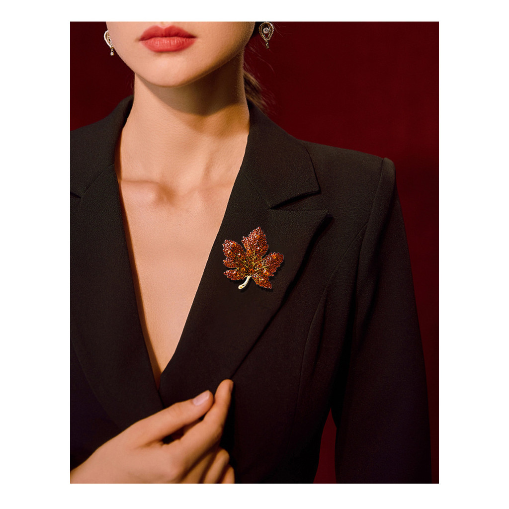 เข็มกลัดคริสตัล.Maple.Leaf มีการตกแต่งด้วยเพชรเล็กๆ ออกแบบอย่างประณีต และเหมาะสำหรับผู้หญิง