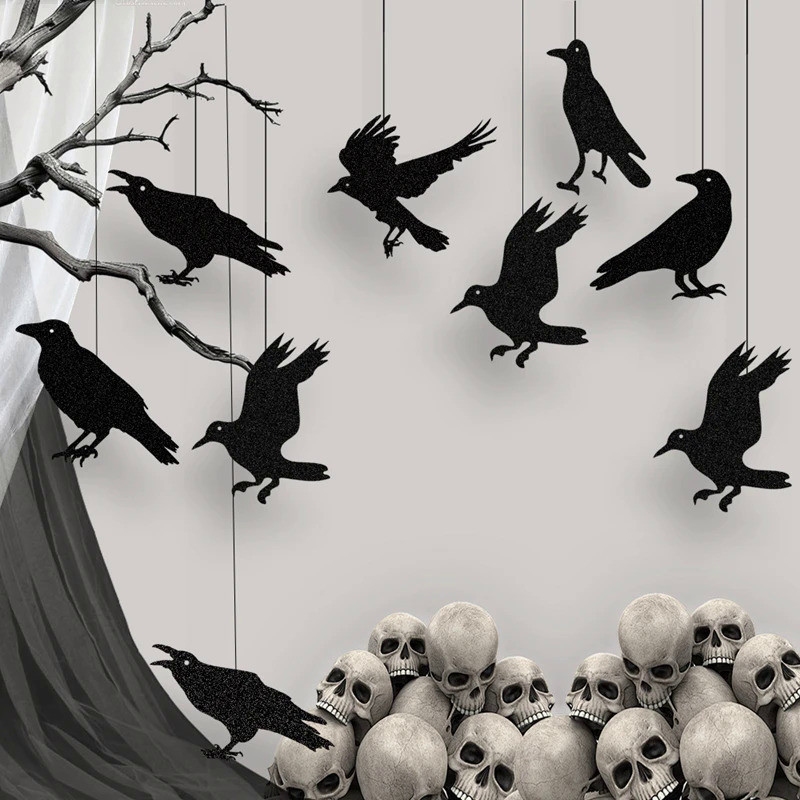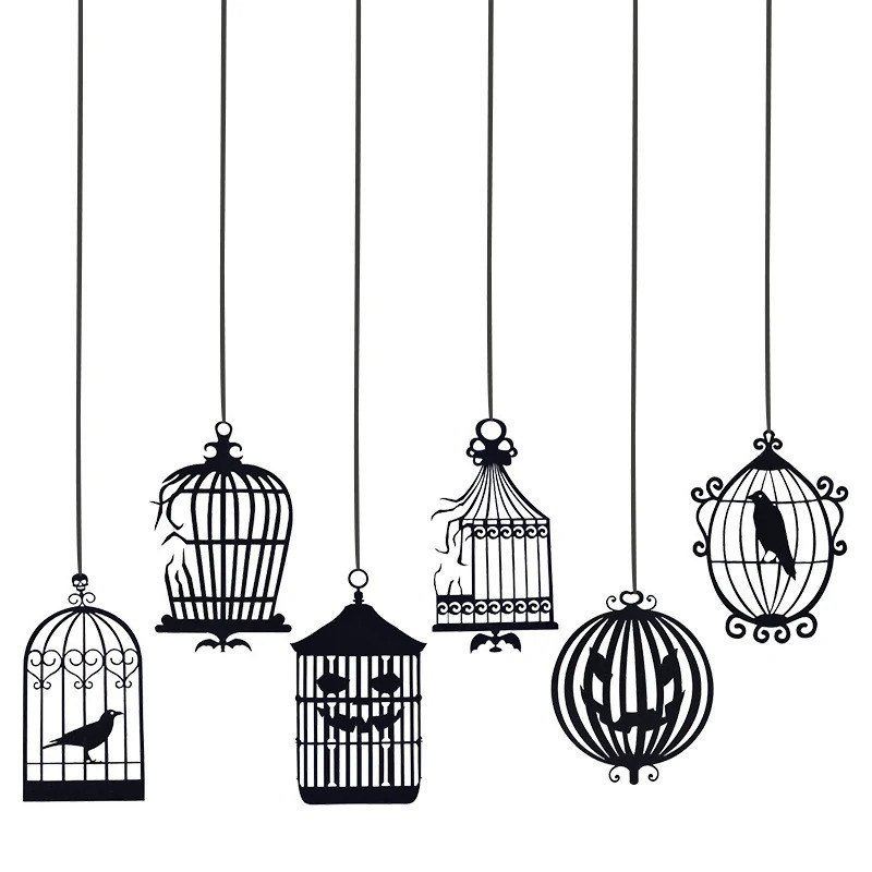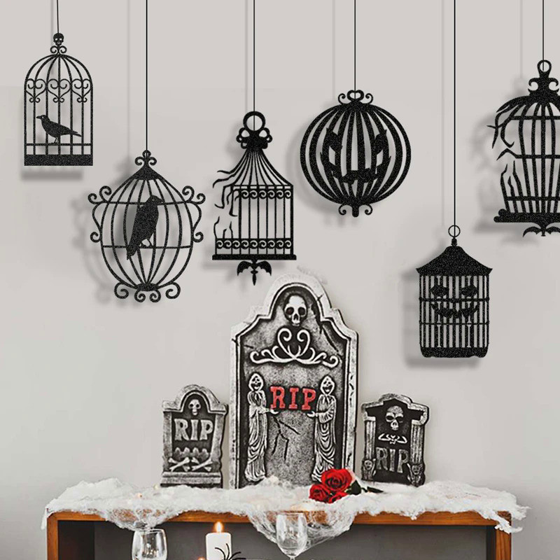 Halloween Black Crow Hanging Banner Garland Birdcage Ornament Paper Pendant For Halloween Party Home Decoration Horror P