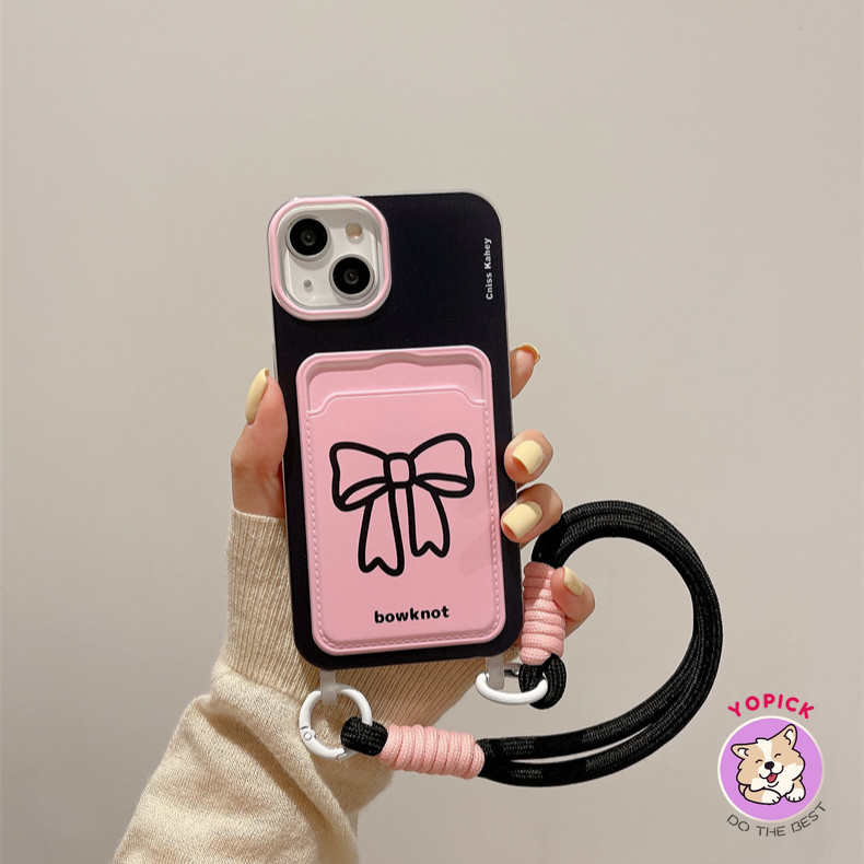 โบว์สีชมพูสายรัดข้อมือสําหรับiphone15เคสโทรศัพท์15plus 14plus 6Plus 7plus xsmax xr 8plus 11pro 12pm 14 13Promaxผู้ถือบัตรฝาครอบโทรศัพท์12 11 Lanyardสาวสไตล์ใหม่ฤดูใบไม้ร่วงฤดูหนาวหญิงน่ารักโปร่งใสShock-ทนGKB