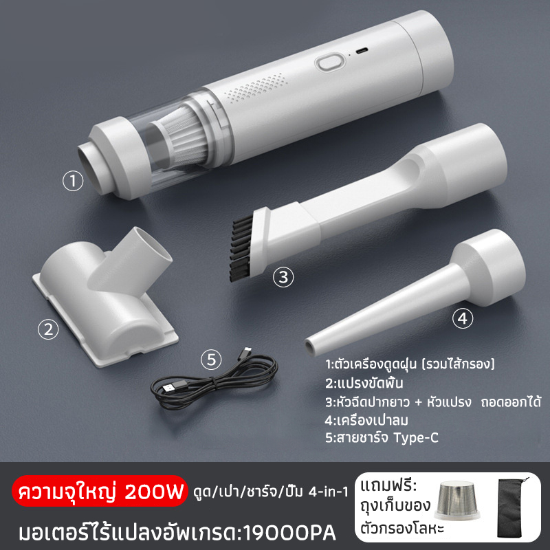NC-XIOAM เครื่องดูดฝุ่นในรถ 21000PA ดูด/เป่า/ชาร์จ/ปั๊ม 4-in-1 เครื่องดูดฝุ่นมือถือ ที่ดูดฝุ่นไร้สาย