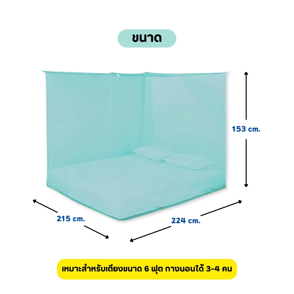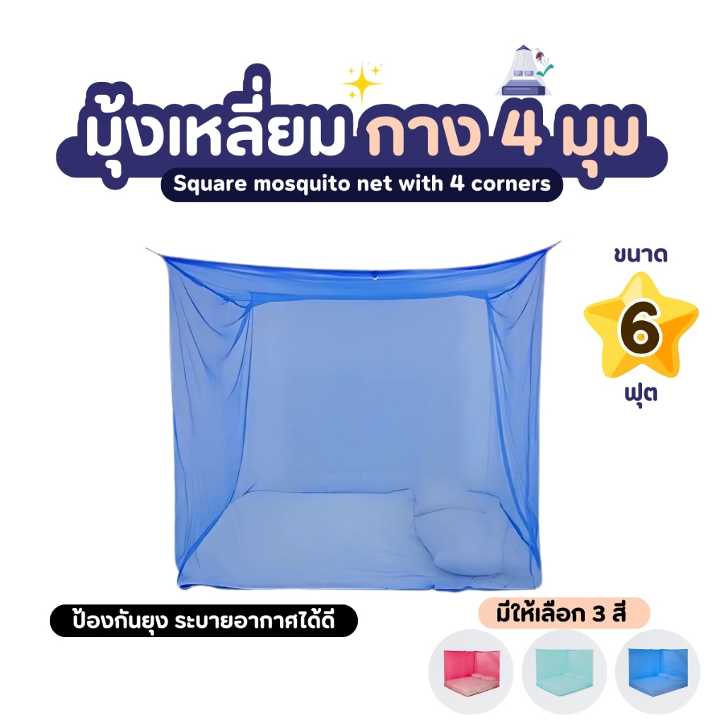 มุ้งกันยุง ขนาด 6 ฟุต มุ้งหลังคาผ้าโพลีเอสเตอร์ 4 หู