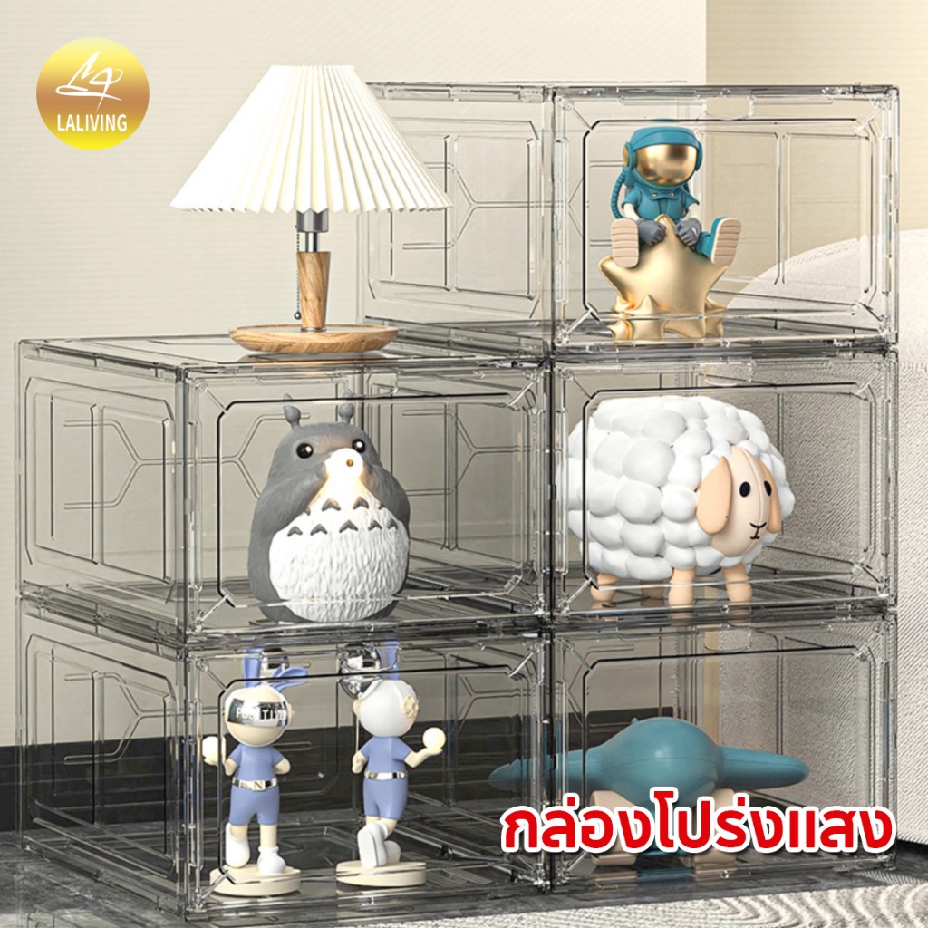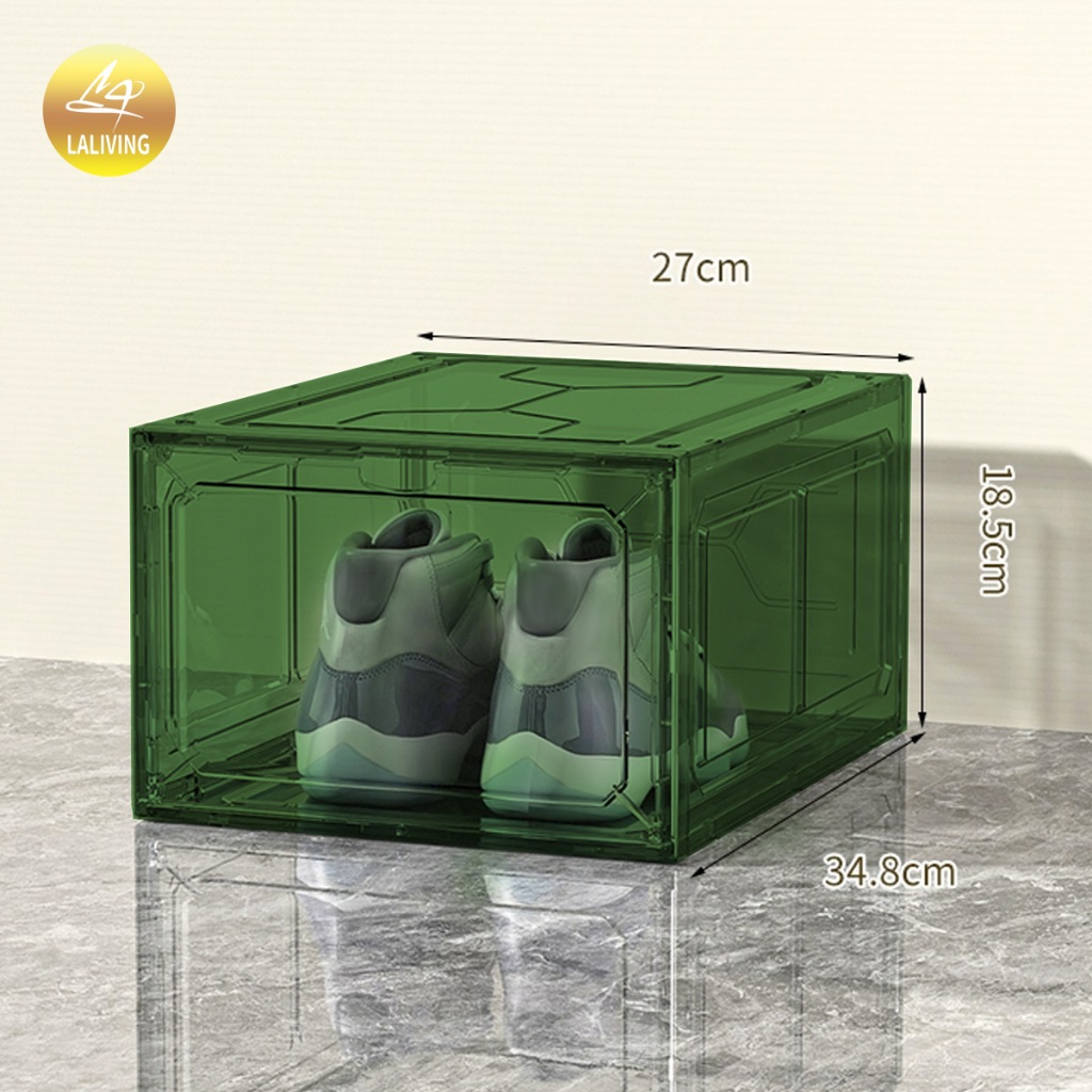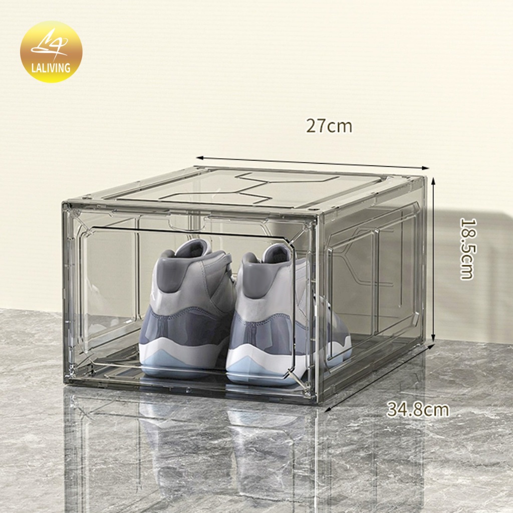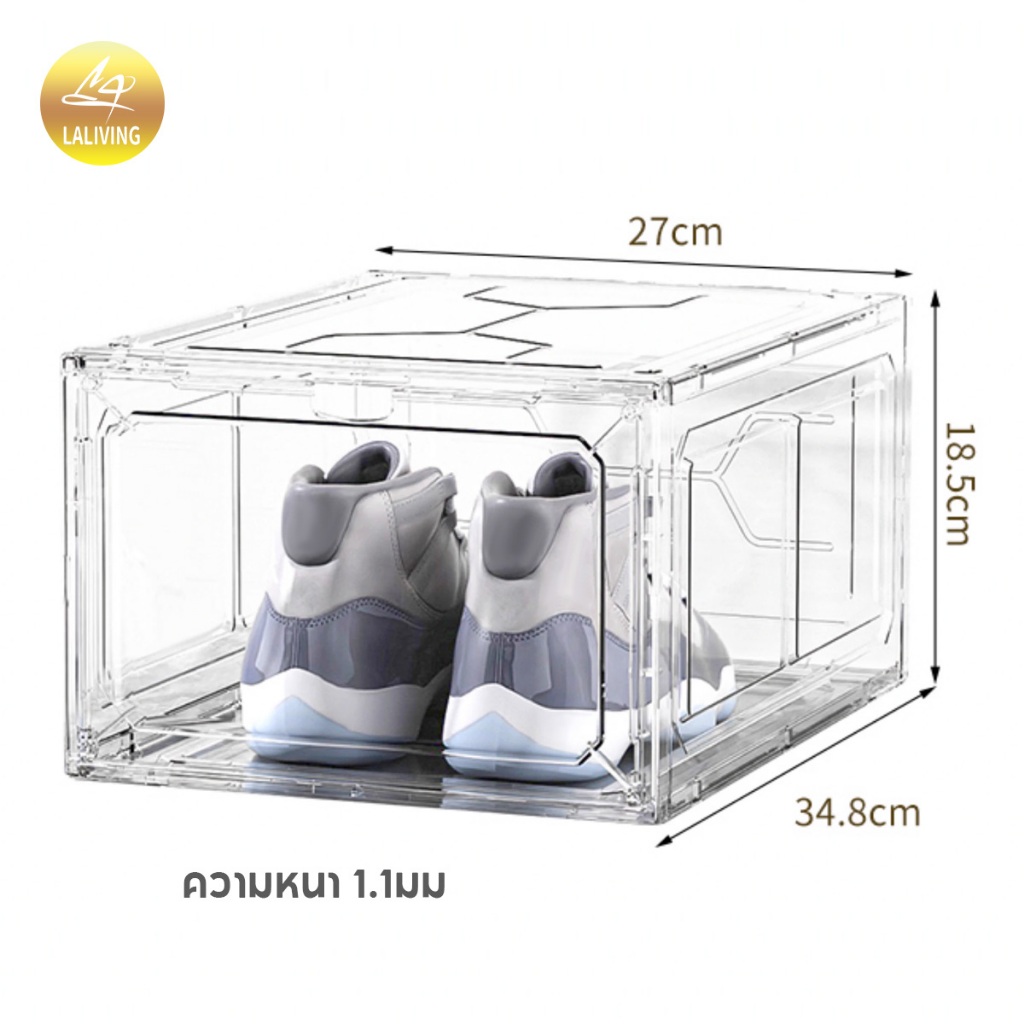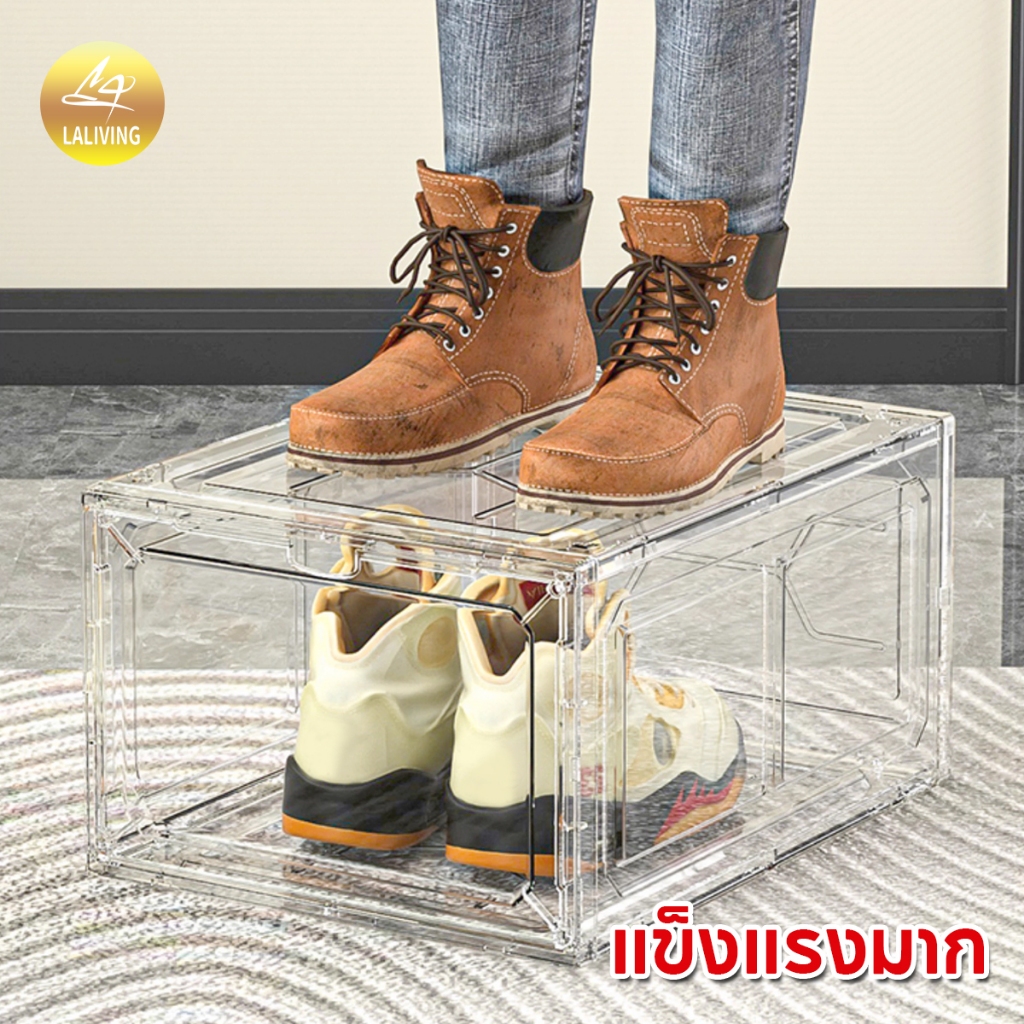 LA กล่องใส่รองเท้าพลาสติกแข็ง วัสดุแบบอะคริลิคใส tower shoe box ออกแบบฝาหน้าแม่เหล็ก เก็บวางรองเท้า