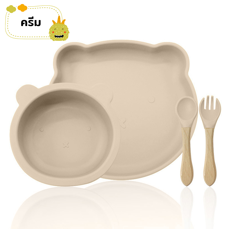 4PCSจานซิลิโคนเด็ก จานซิลิโคนเด็กดูดโต๊ะ จานเด็ก6เดือนขึ้นไป