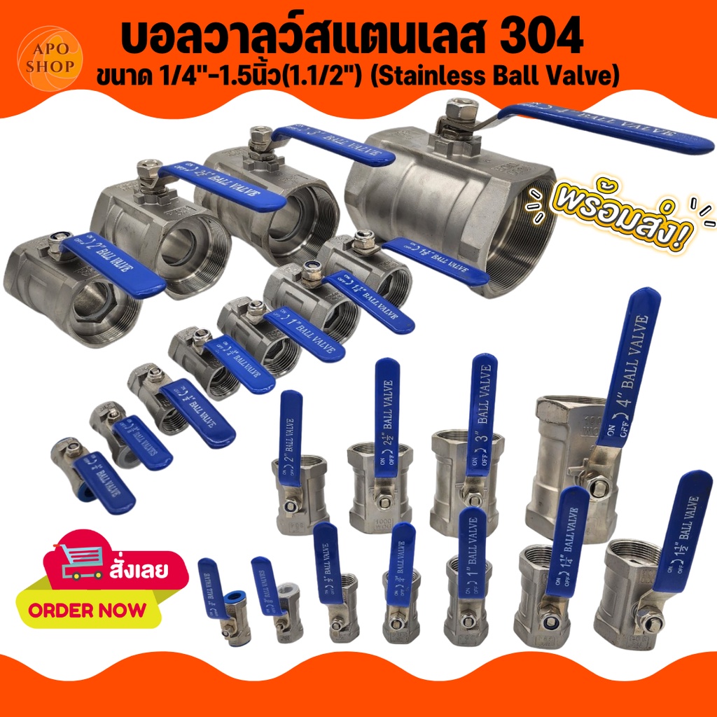 APO I บอลวาลว์สแตนเลส 304 ขนาด 1/4''- 1.5นิ้ว(1.1/2'')(Stainless Ball Valve)