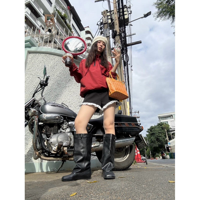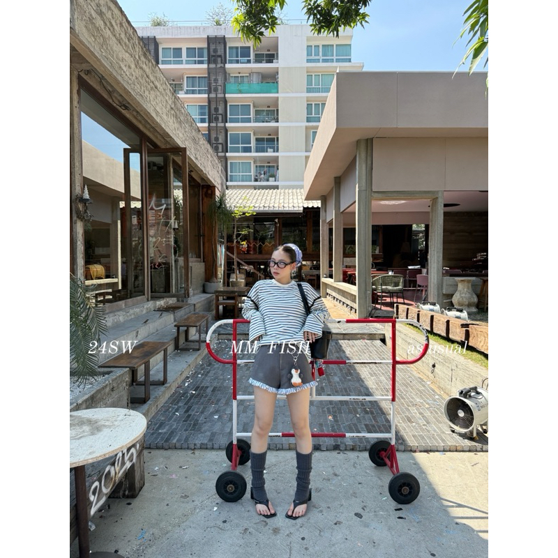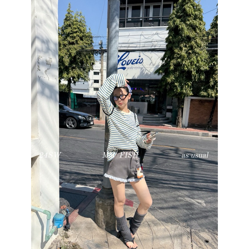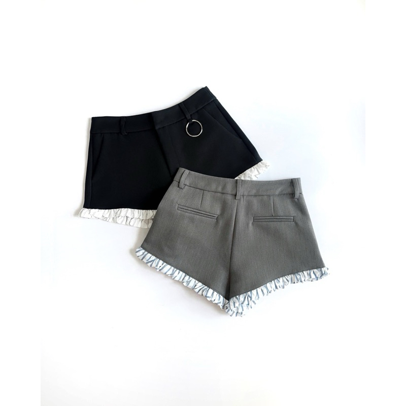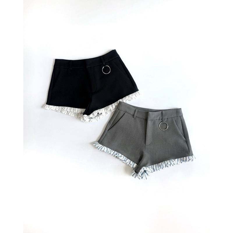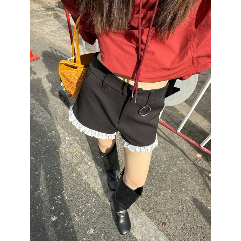 𝗠𝗢𝗟𝗟𝗬 𝗠𝗜𝗡𝗜 𝗦𝗛𝗢𝗥𝗧𝗦☁️🌪️🖤(SM) ไอเท็มใหม่ล่าสุด! กางเกงขาสั้นดีไซน์ปลายขาเย็บผ้าระบายริ้ว กิมมิคแต่งห่วงอะไหล่เงิน onseason