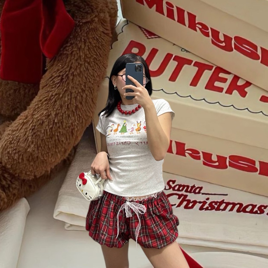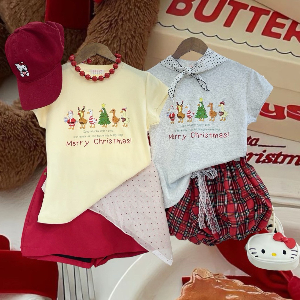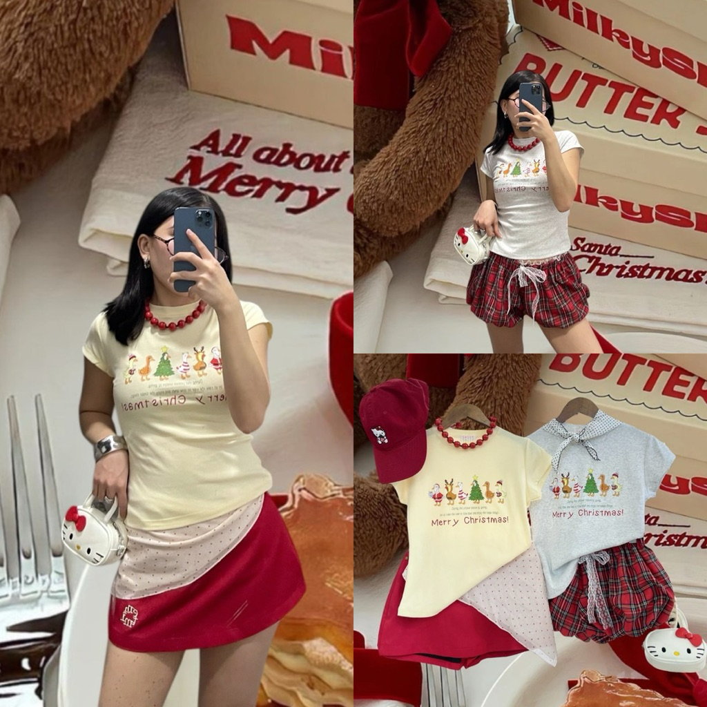 duck baby tee. 🦆🎄 เสื้อยืดคอกลม ผ้ายืดหยุ่น เป็นทรงสวยเลย เก็บเอวคอดสวย เข้ารูปแต่ไม่รัดแน่น ใส่สบาย ผ้ายืดได้เยอะ