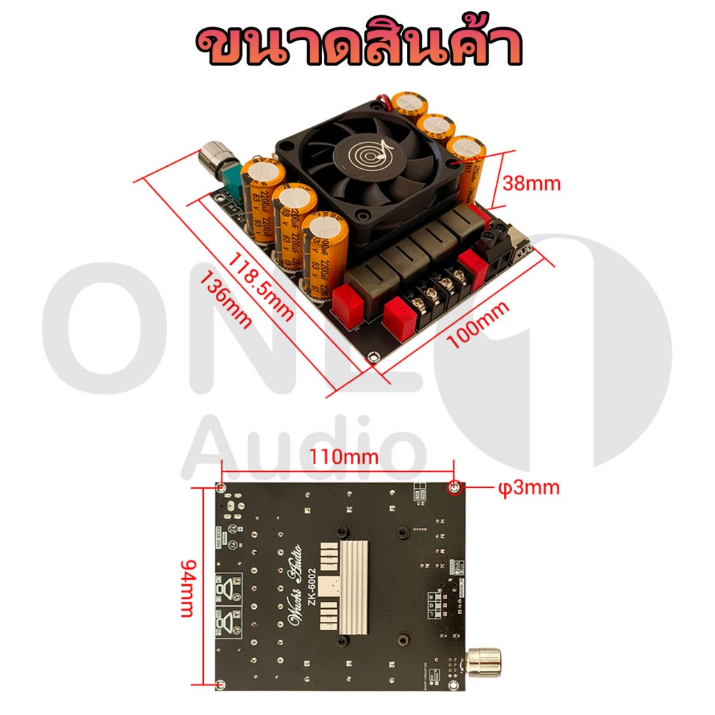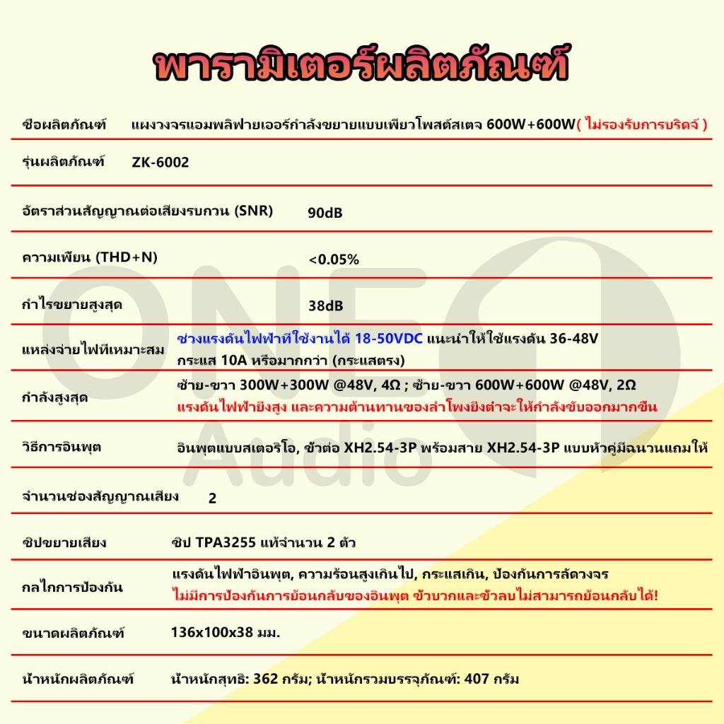 OneAudio แอมป์จิ๋ว ZK-6002 แท้ 100% TPA3255 600W*2 DC18-50V สำหรับขับซับวูฟเฟอร์ แอมป์จิ๋วขับซับ แอมป์ขับซับเบส แอมขับซับเบส zk-6002 ขับซับเบส