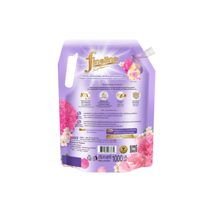 [แพ็ค3] Fineline ไฟน์ไลน์ ดีลักซ์เพอร์ฟูม ปรับผ้านุ่มสูตรเข้มข้นพิเศษ กลิ่น Joyful Scent 1,000มล. x3