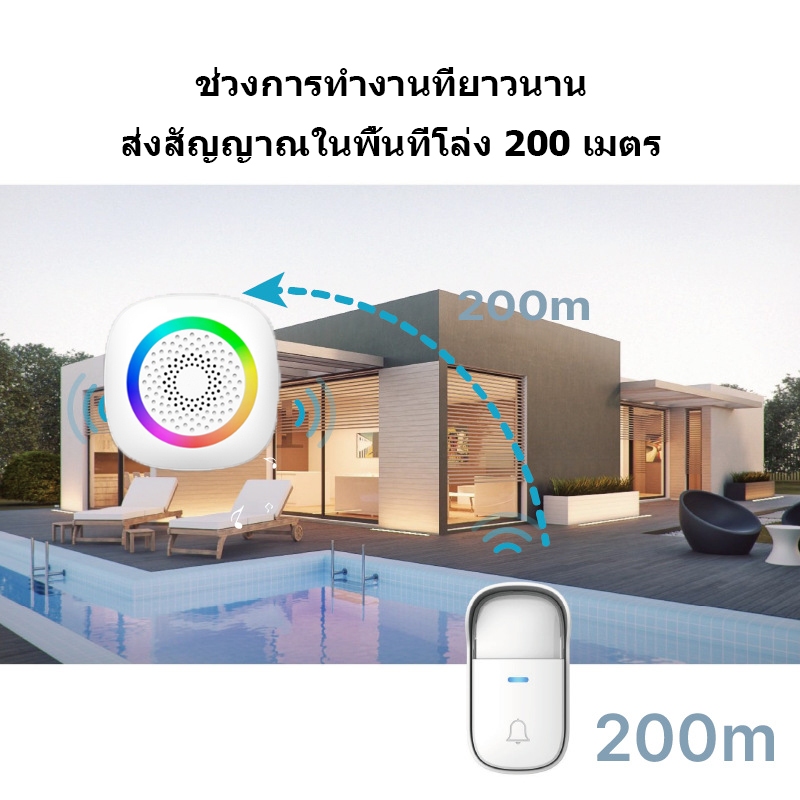 freesky กริ่งไร้สาย ไร้สายไม่ต้องใช้ถ่าน ไม่ต้องเสียบปลั๊ก ทนแดด ทนน้ำ ปรับเสียงได้ 60 แบบ