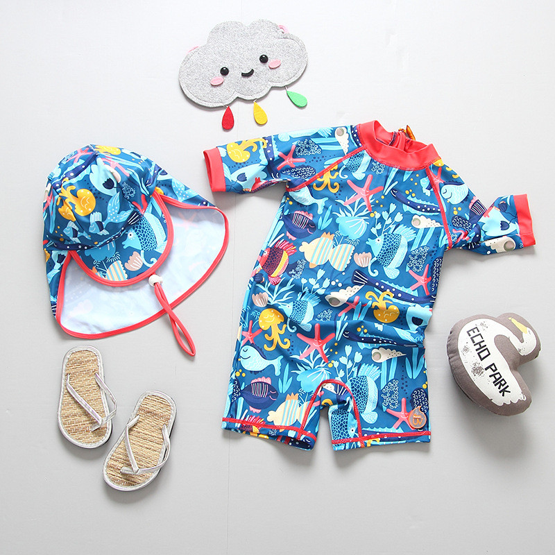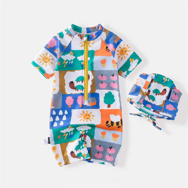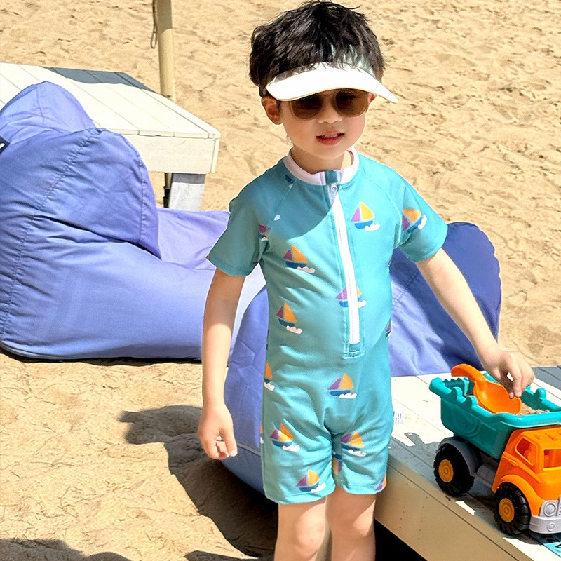 [1-9 ปี] ชุดว่ายน้ําเด็ก Baby Beach Quick-Drying ชุดว่ายน้ํา Boy Little Boy แขนสั้น One- Piece S