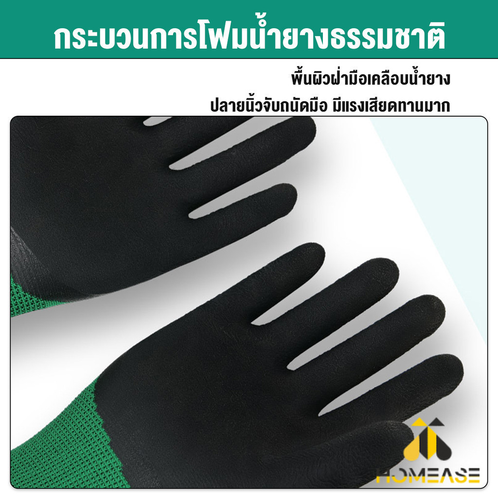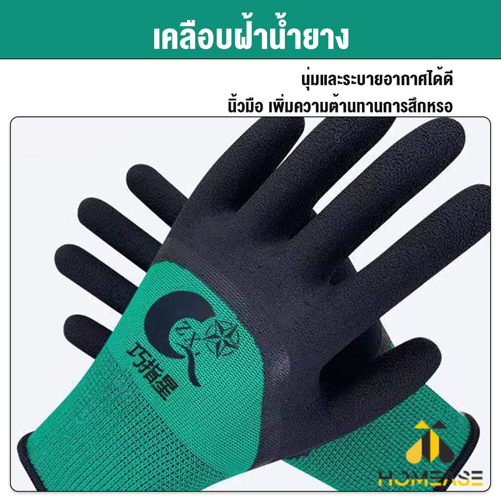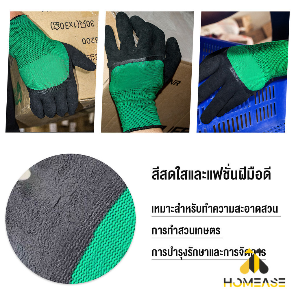 HA ถุงมือผ้าเคลือบยาง กันบาด กันหนาม กันลื่น ถุงมือทำสวน ถุงมือช่าง Rubber gloves