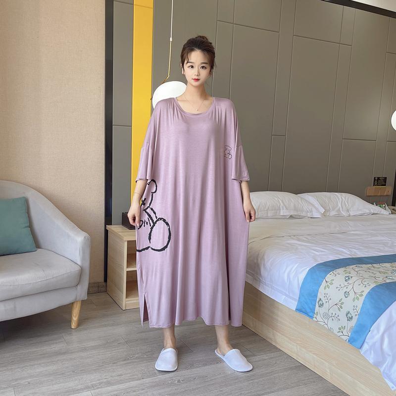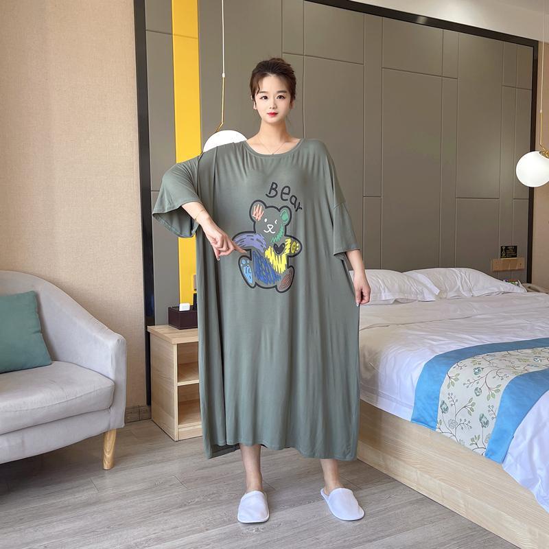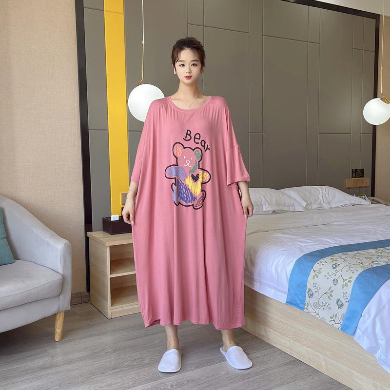 【Pajamas Oversize】ชุดแม็กซี่เดรสยาว แขนสั้น ทรงหลวม ขนาดใหญ่ 150 กก. แฟชั่นฤดูร้อน สําหรับสตรี