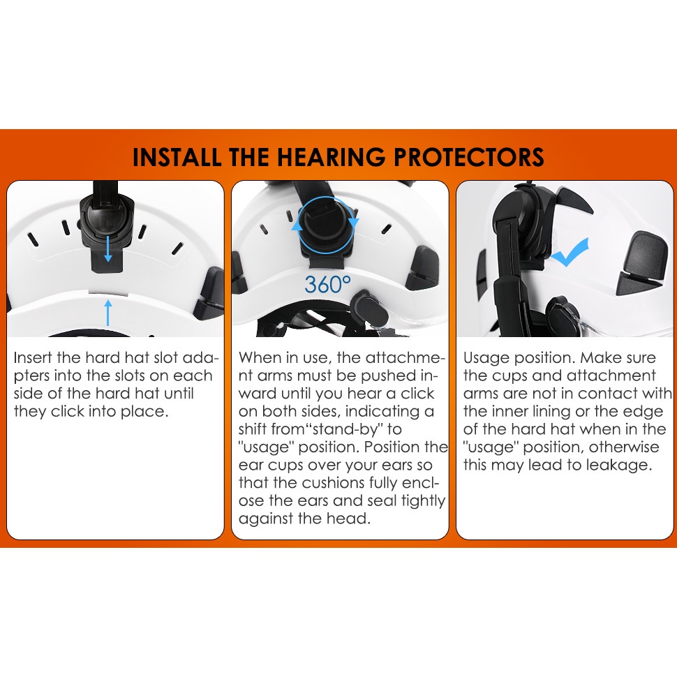 AOLAMEGS Earmuff หมวกนิรภัยอุปกรณ์เสริมป้องกันเสียงรบกวนแยกหัวเข็มขัดในหู