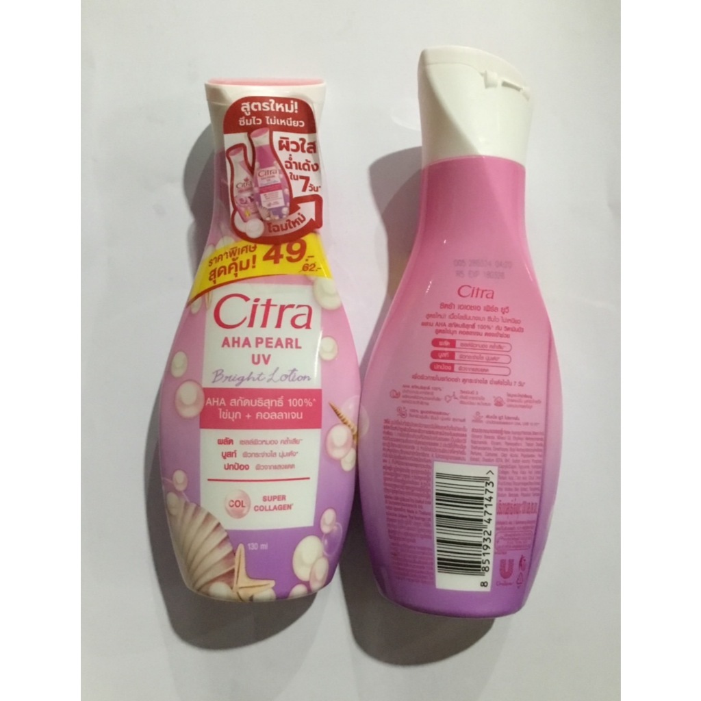 Citra ซิตร้า โลชั่นบำรุงผิวกาย เอเอชเอ เพิร์ลลี่ ยูวี (AHA สกัดบริสุทธิ์ 100% ไข่มุก+คอลลาเจน) 110 มล.