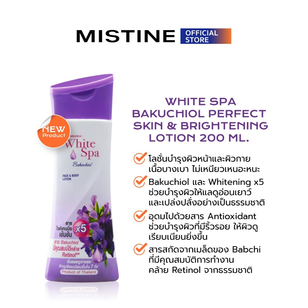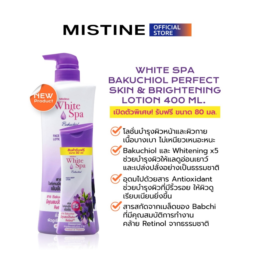 มิสทีน ไวท์ สปา บาคูชิออล เพอร์เฟ็กต์ สกิน แอนด์ ไบรท์เทนนิ่ง โลชั่น 400มล.