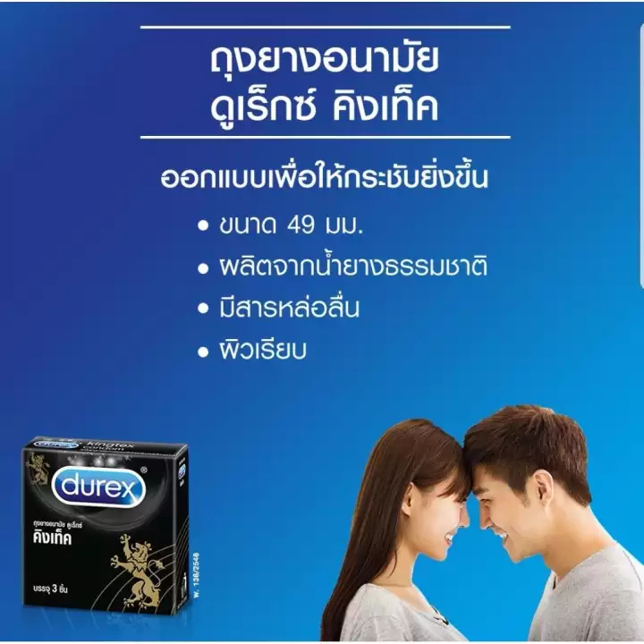 (12กล่อง) ถุงยางอนามัยดูเร็กซ์ คิงเท็ค ขนาด 49มม. (3ชิ้น) Durex Kingtex Condom