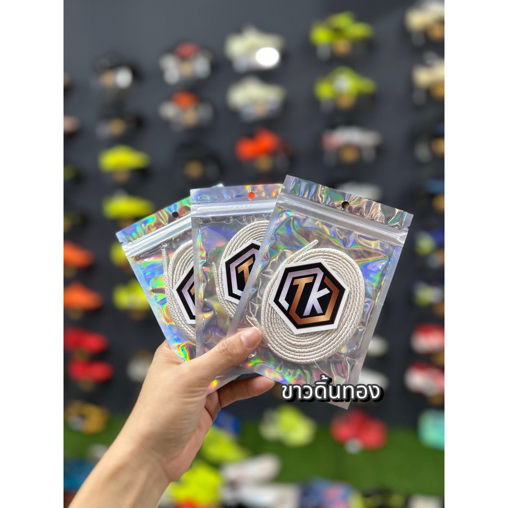 เชือกรองเท้าTKขนาด 3MM ยาว 120cm สีพื้นแต่งดิ้นเงิน ดิ้นทอง