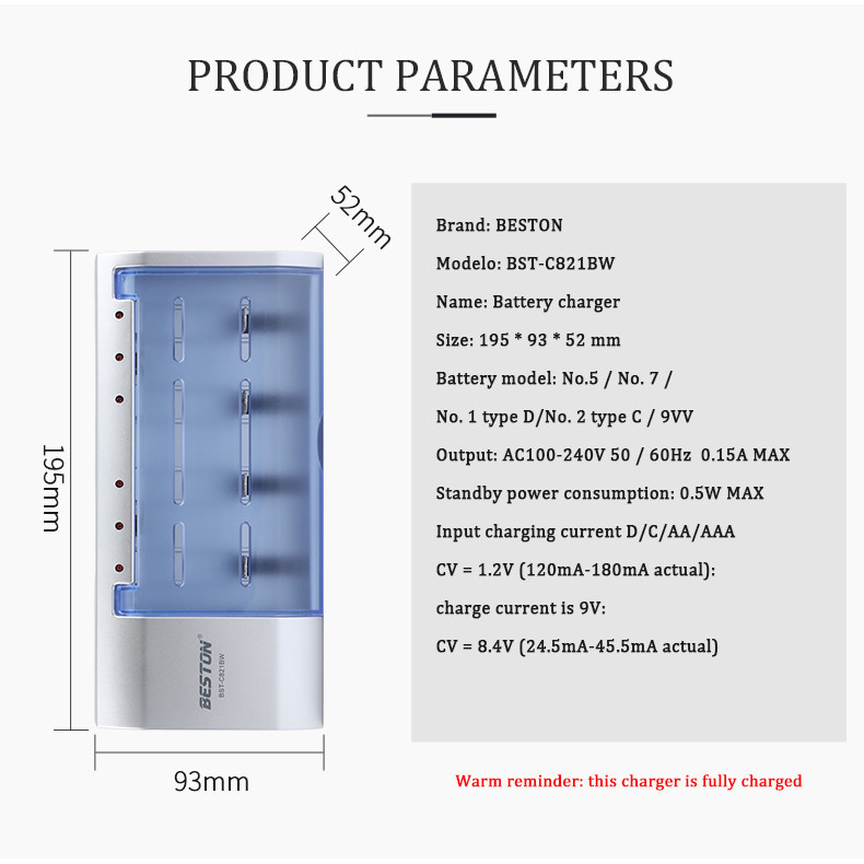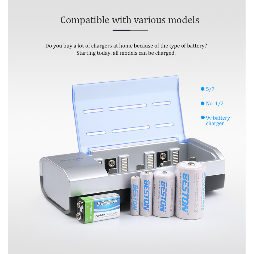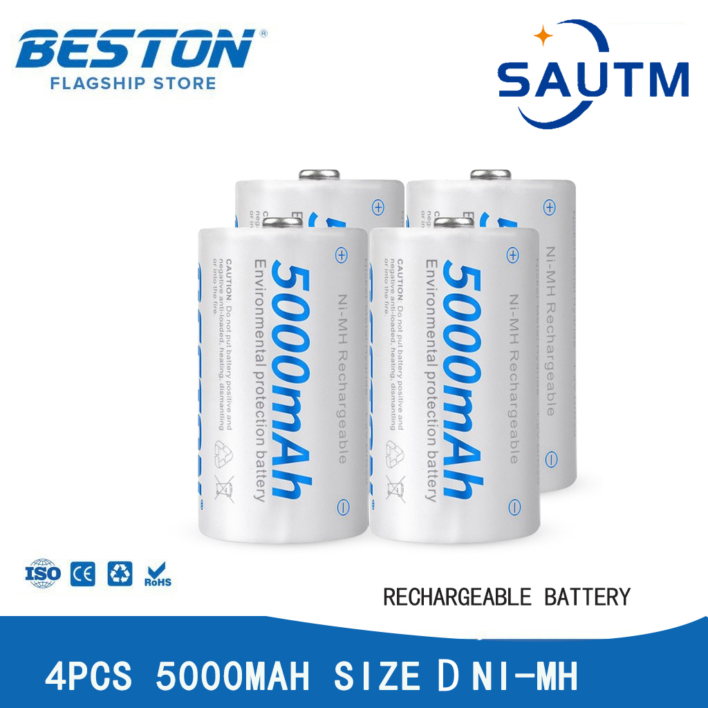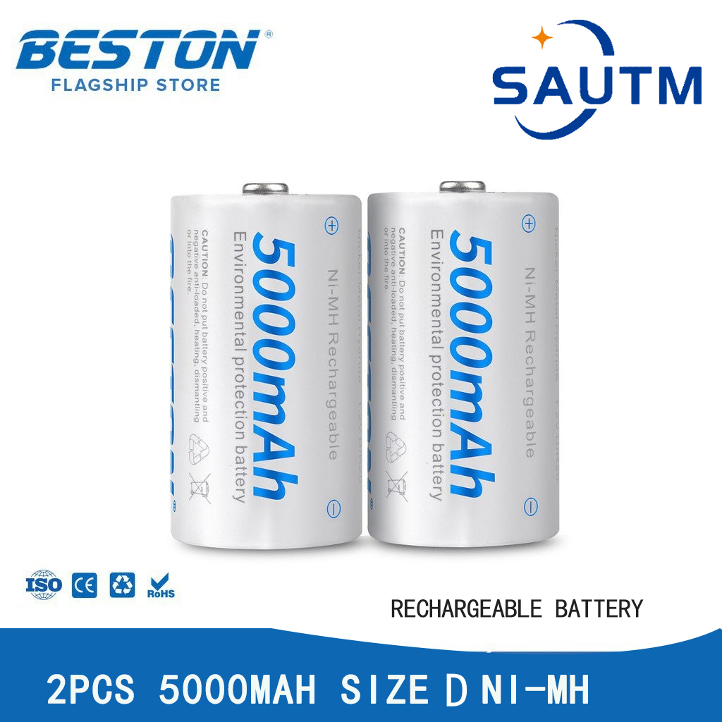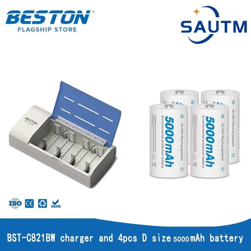 Beston (D ขนาด) 5000mAh แบตเตอรี่แบบชาร์จไฟได้ Ni-MH + Beston C821BW ที่ชาร์จ