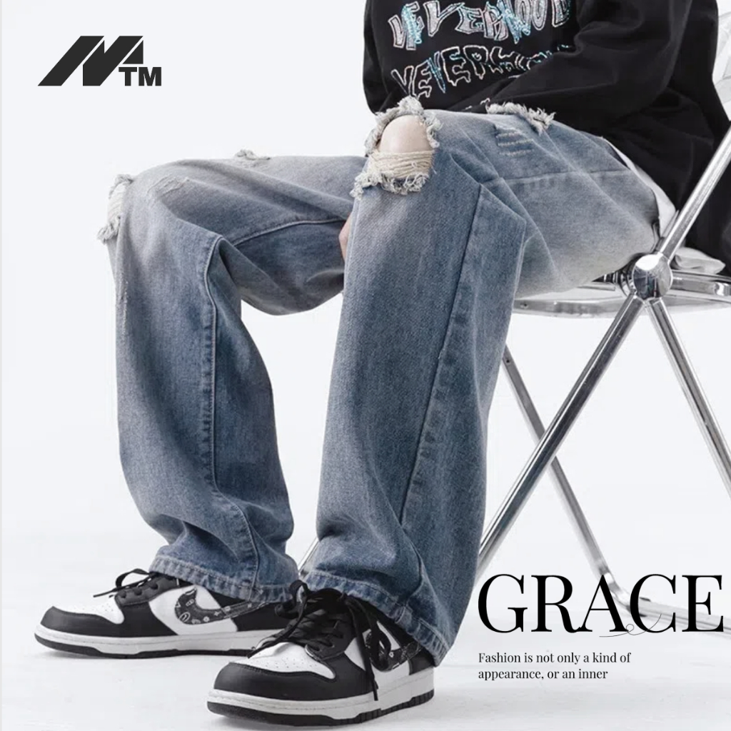 M.T.M กางเกงยีนส์ กางเกงยีนขากว้างลําลอง ทรงหลวม แนวสตรีท เหมาะกับฤดูร้อน สไตล์อเมริกัน สําหรับผู้ชาย ขายาว ผู้ชาย#กางเกงยีนส์