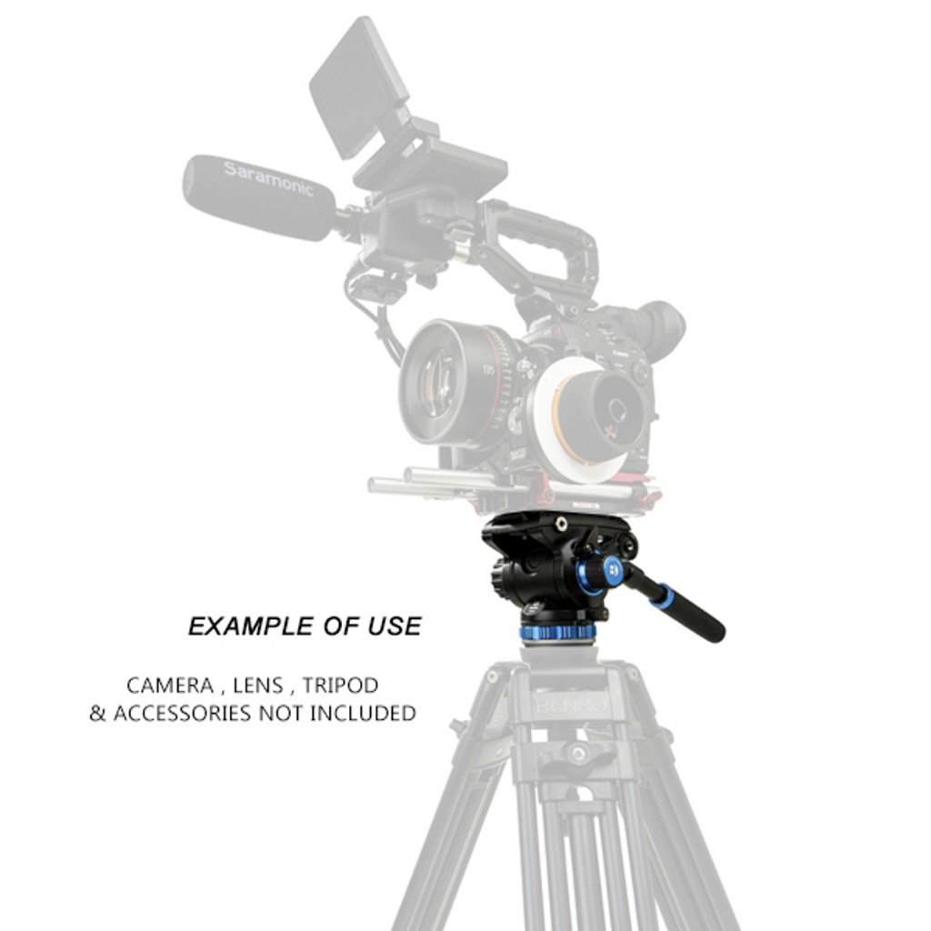 Benro S6N / S6 PRO Flat Base Fluid Video Head, 13.2 lb Max, 6 Step Counterbalance (0-5), 1/4"-20 อุปกรณ์เสริม Mounts, 3/8 "-16 Head Mount, w/Pan Arm