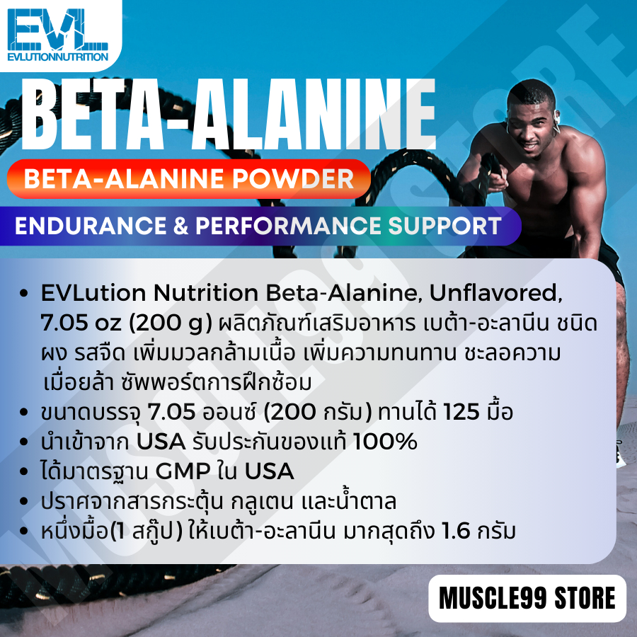 💊EVLution Nutrition Beta-Alanine(200 g) เบต้า-อะลานีน ชนิดผง รสจืด
