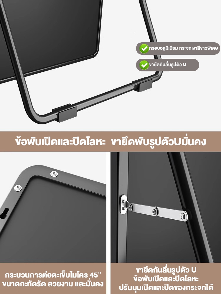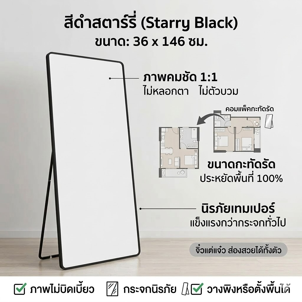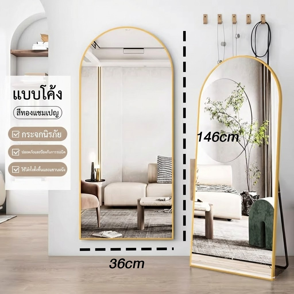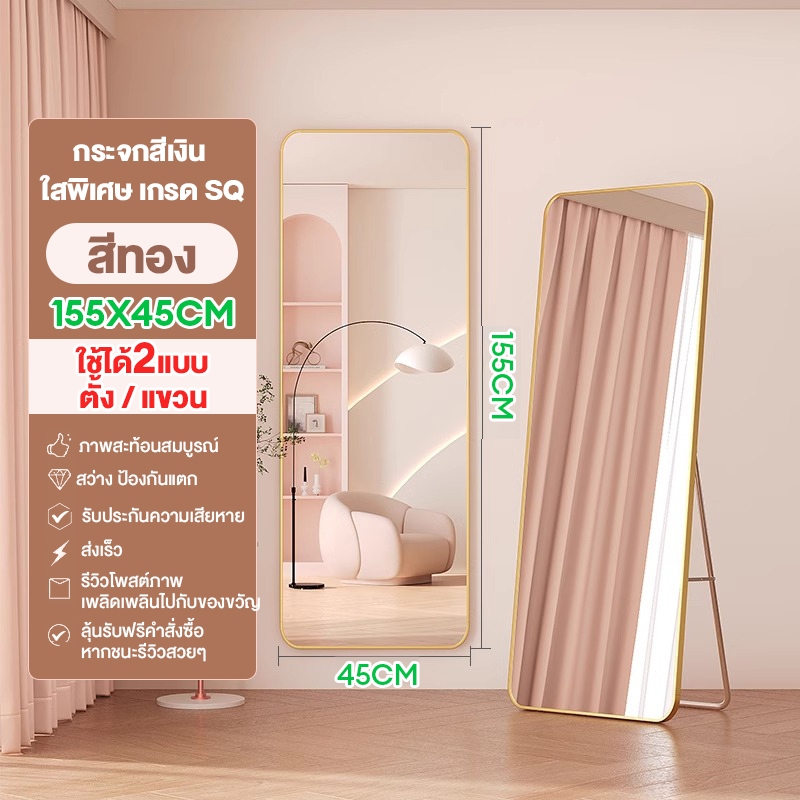 LP กระจก กระจกเต็มตัว 165×50ซม ชนิดตั้งพื้น/ติดผนัง พร้อมขาตั้ง การชดเชยความเสียหายของ ฟรีค่าชดเชยกรณีเกิดความเสียหาย