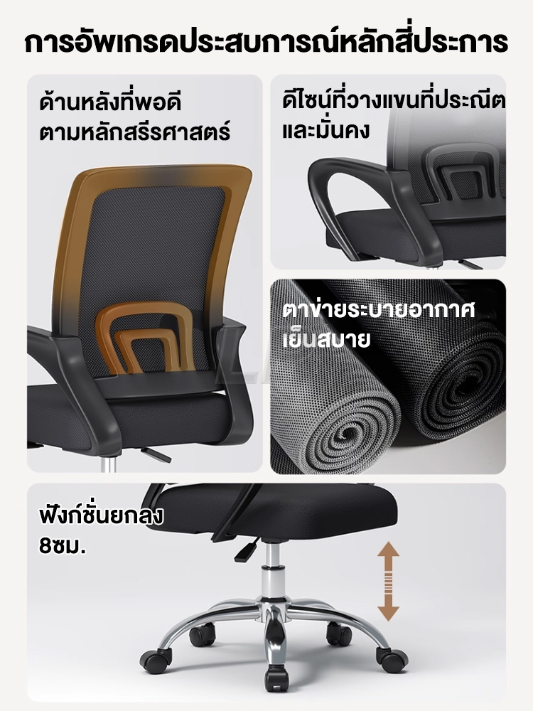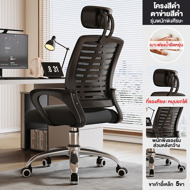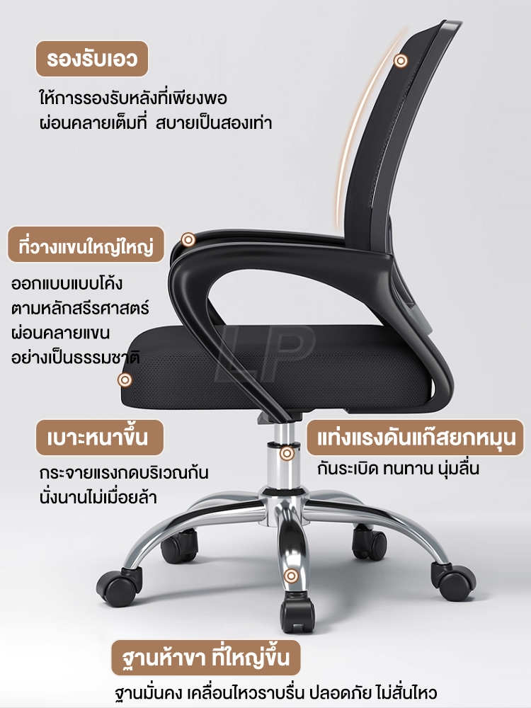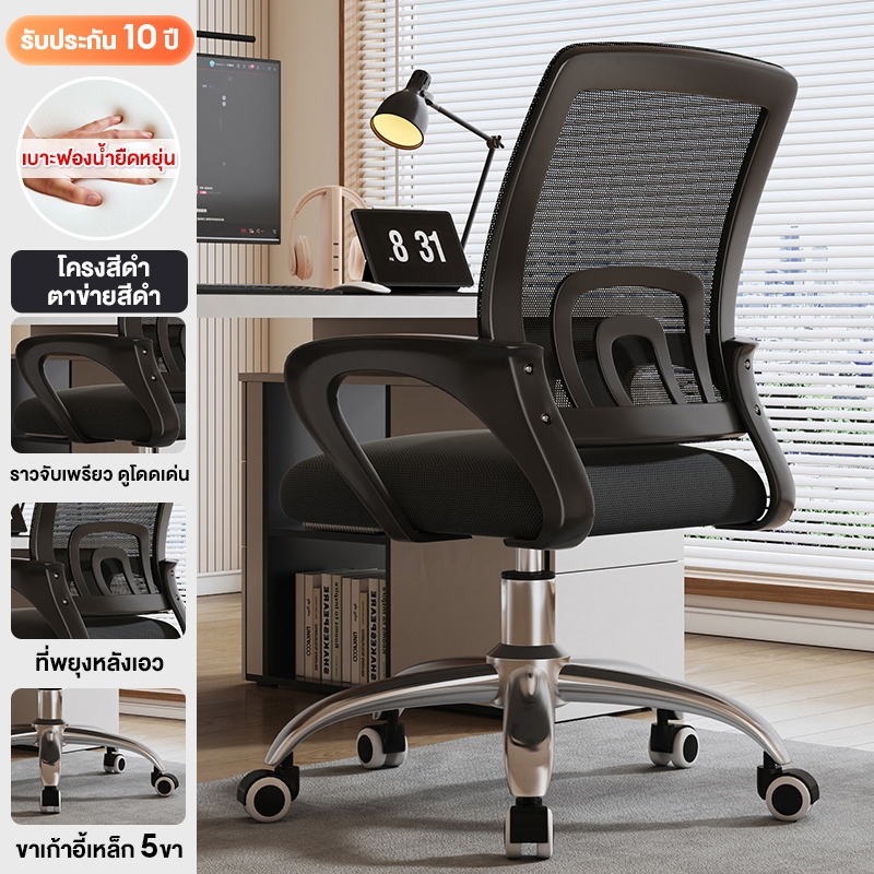 LP💥ราคาต่ำสุด💥เก้าอี้ทํางาน เก้าอี้สำนักงาน ปรับระดับ Office Chair ขาเหล็ก พนักพิงหลัง นั่งนุ่ม