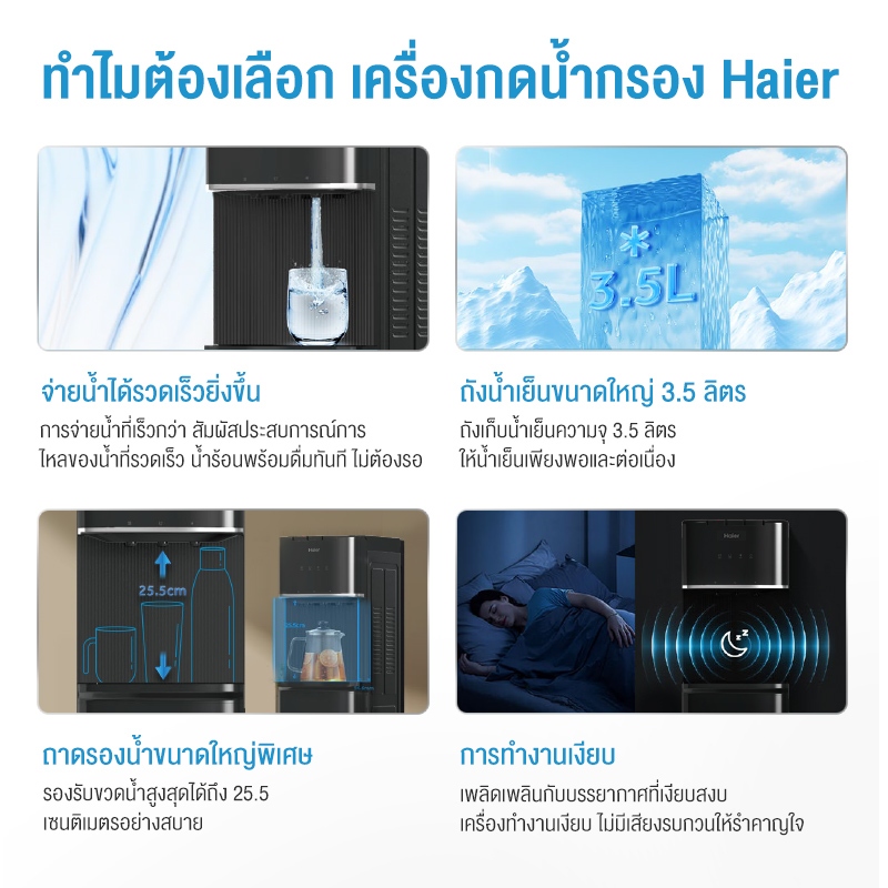 Haier ตู้กดน้ำดื่มร้อน-เย็น 3 อุณหภูมิ ระบบถังล่าง รุ่น HDC-BB3A1B