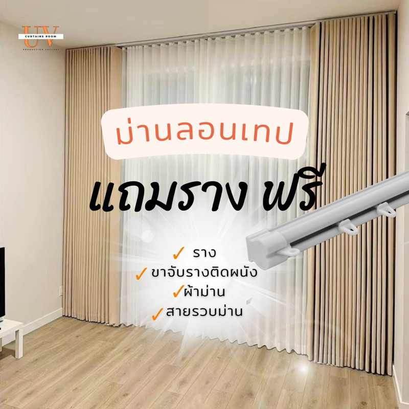 ม่านลอนเทป แถมราง ผ้ากันยูวี100% ขนาดรวมลอนแล้ว แนะนำให้ลูกค้ากดสั่งทีละ 1 ข้าง