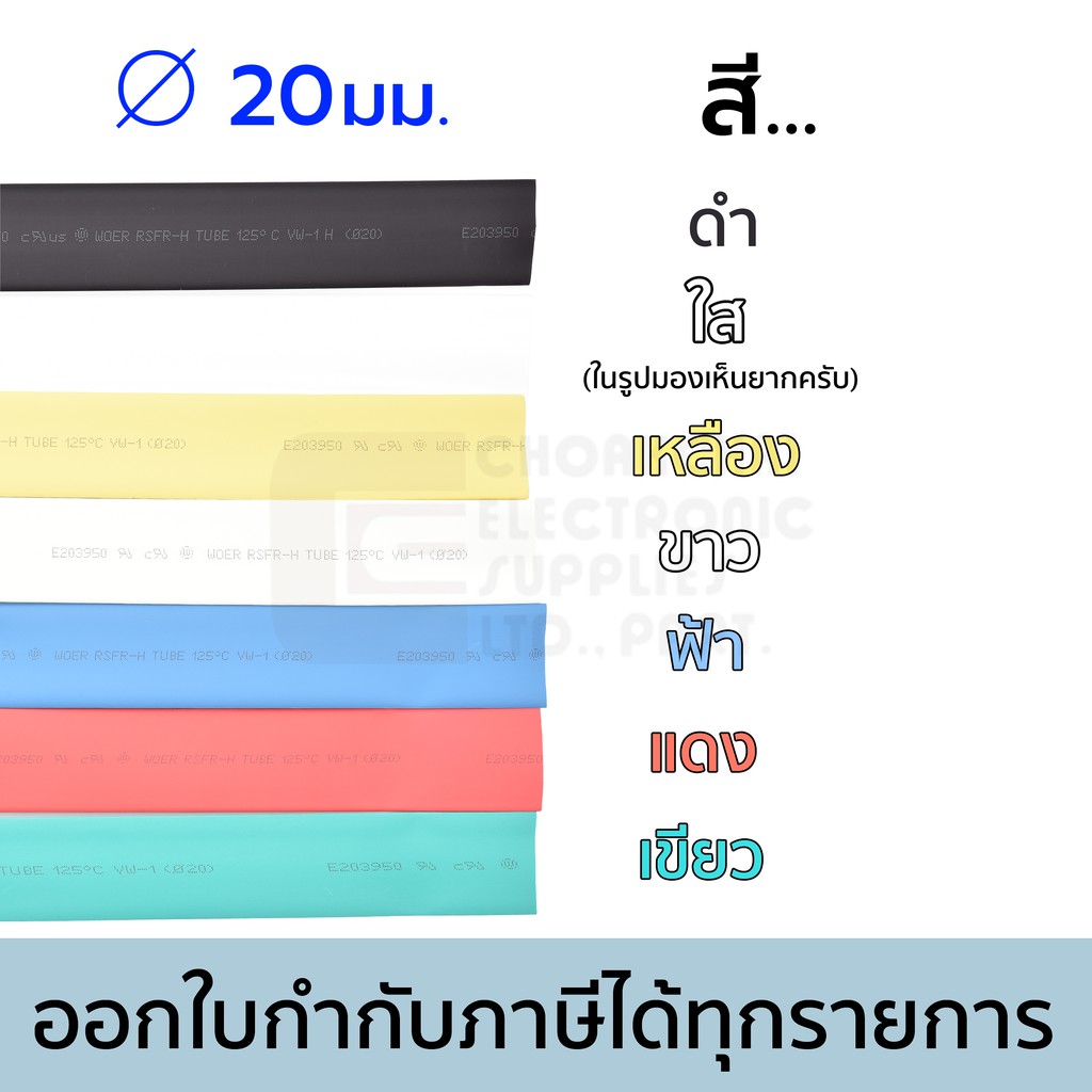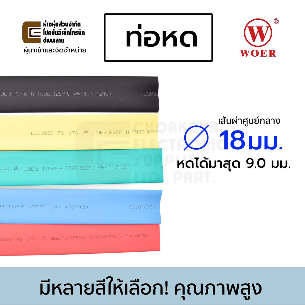 Woer ท่อหด เส้นผ่านศูนย์กลาง ขนาด 18/20/22/25/28มม มีหลายสีให้เลือก ยาว 1เมตร รุ่น RSFR-H
