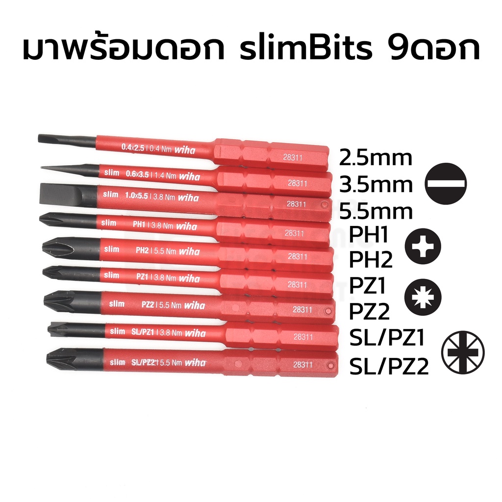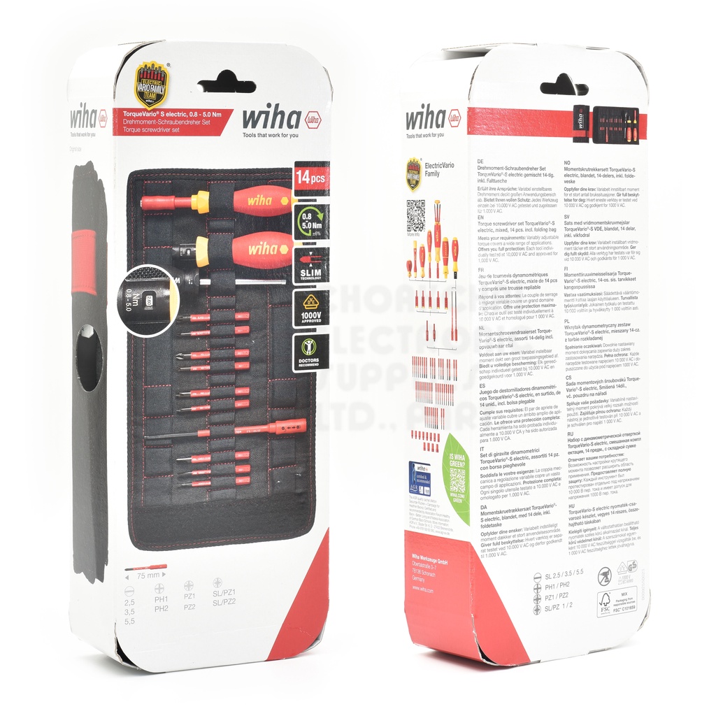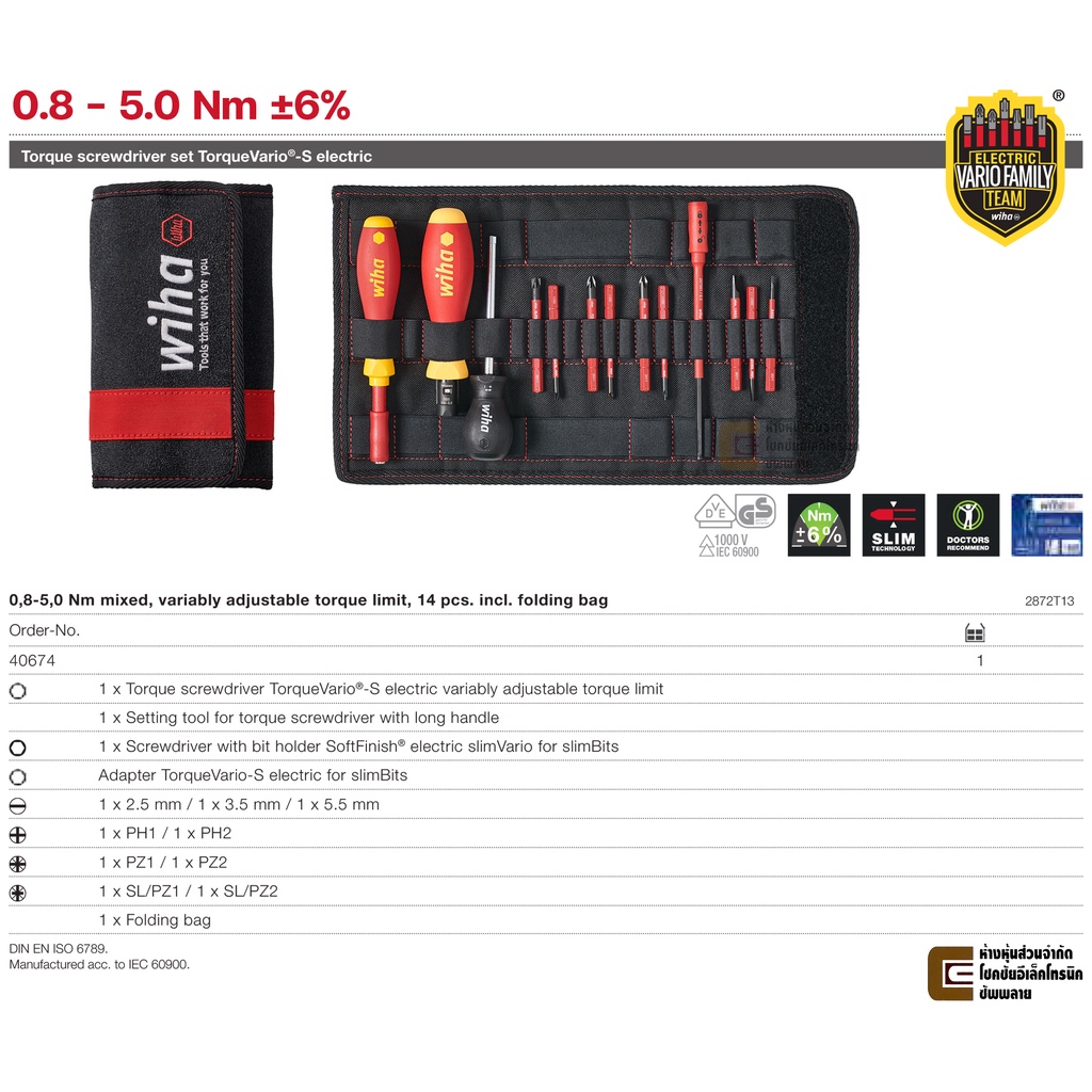 Wiha 2872T13 TorqueVario-S Electric VDE ไขควงแรงบิด ชุด13ชิ้น Torque Driver 0.8-5.0 Nm ±6% ฉนวนกันไฟฟ้า 1000V