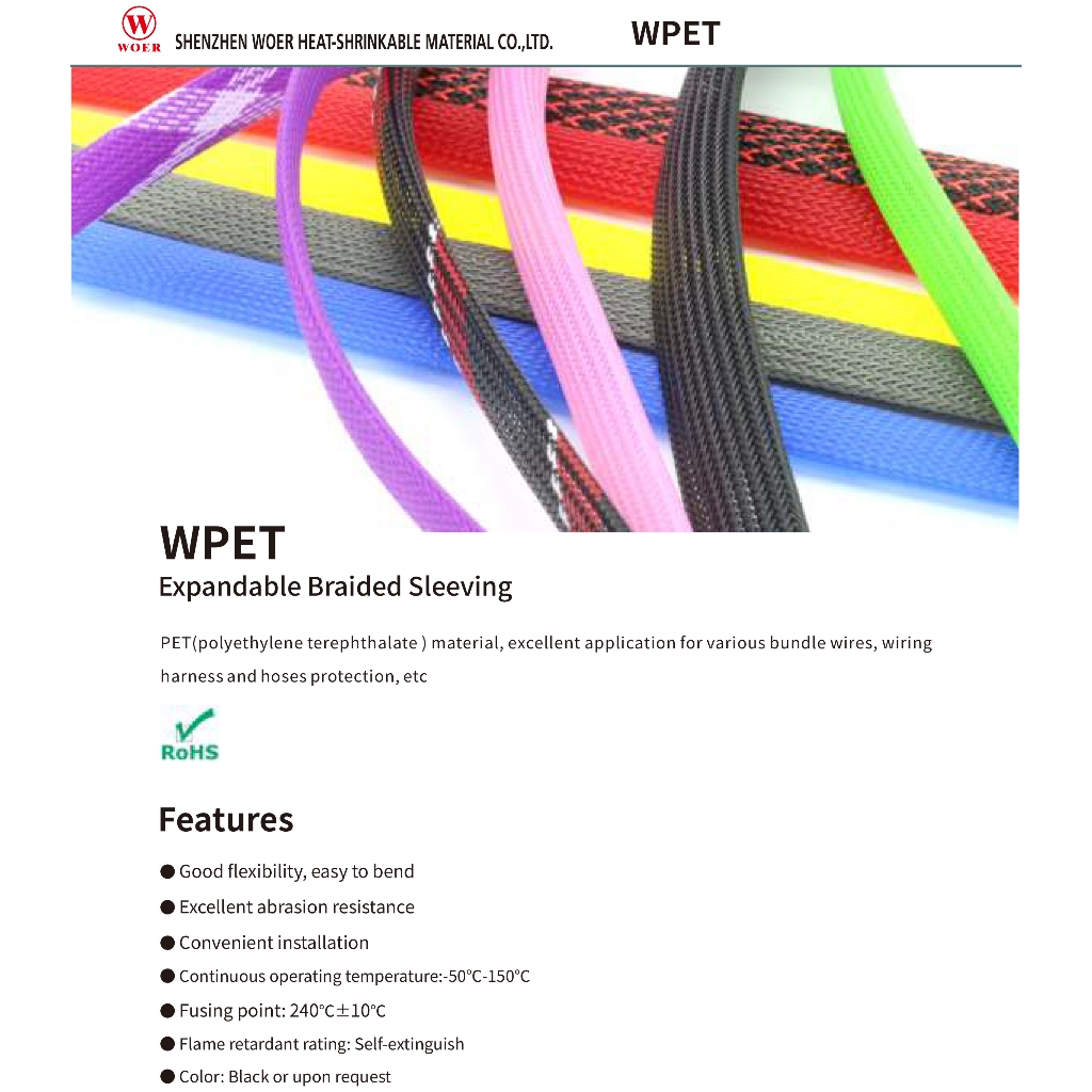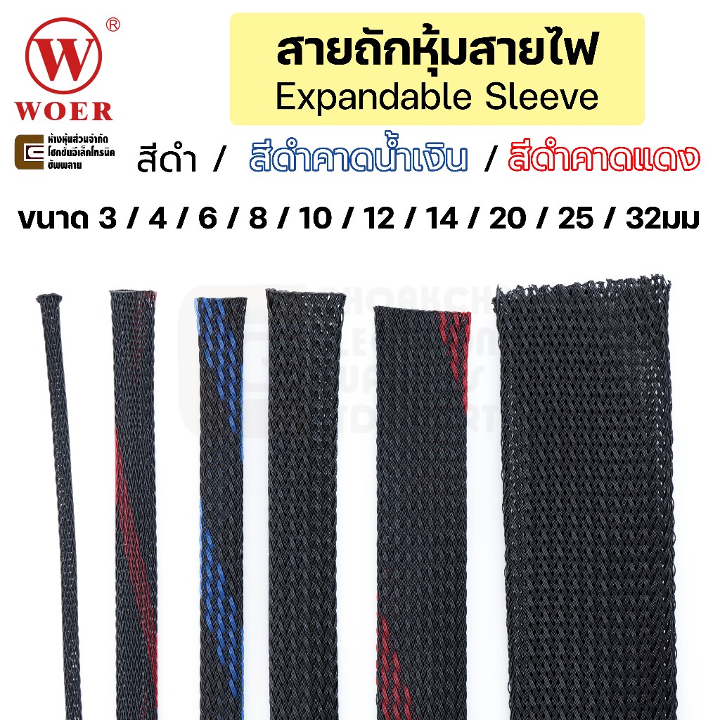 Woer WPET สายถักหุ้มสายไฟ ขนาด 3มม 4มม 6มม 8มม 10มม 12มม 14มม 20มม 25มม 32มม คุณภาพสูง PET Expandable Cable Sleeve