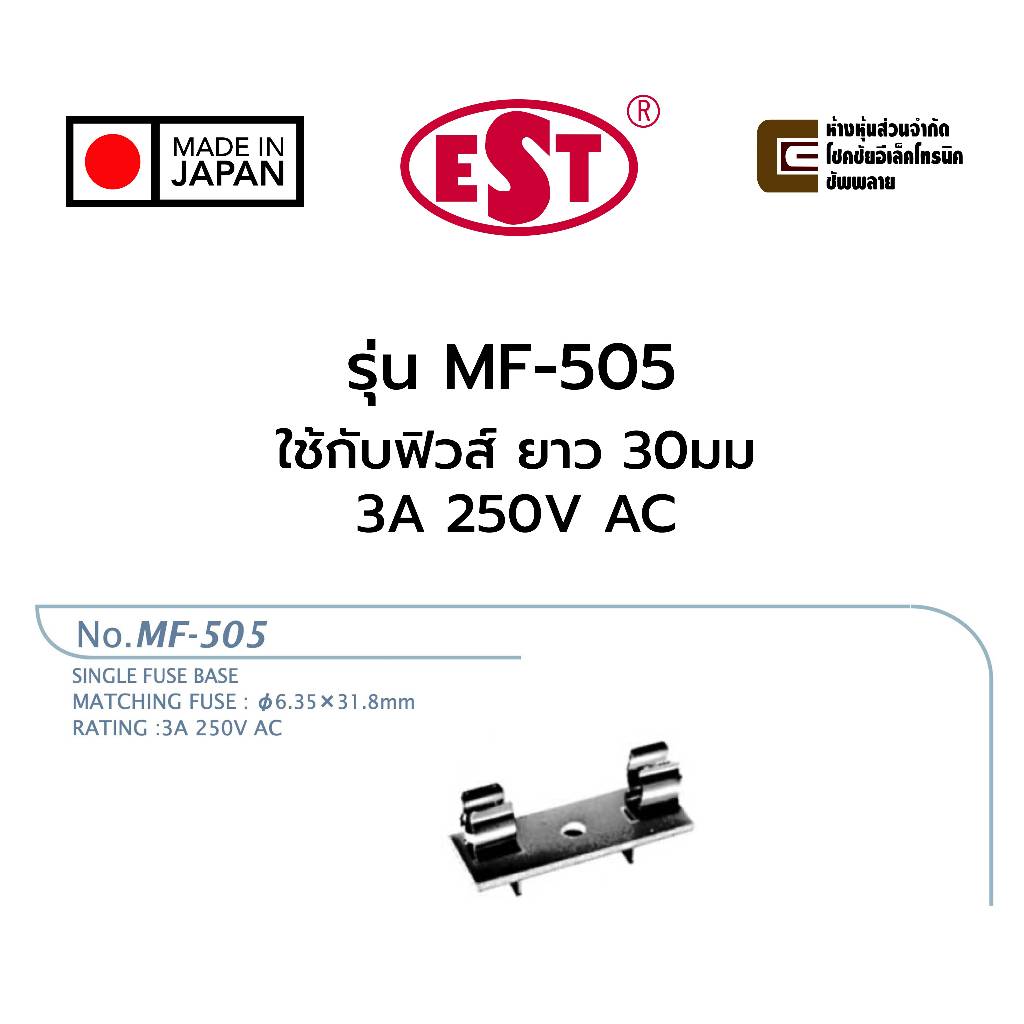EST MF-505 กระบอกฟิวส์ ขนาด 30มม 3A 220V ติดปริ้นท์ PCB Mount, Made in Japan คุณภาพสูง 250V AC ฟิวส์ Fuse Holder