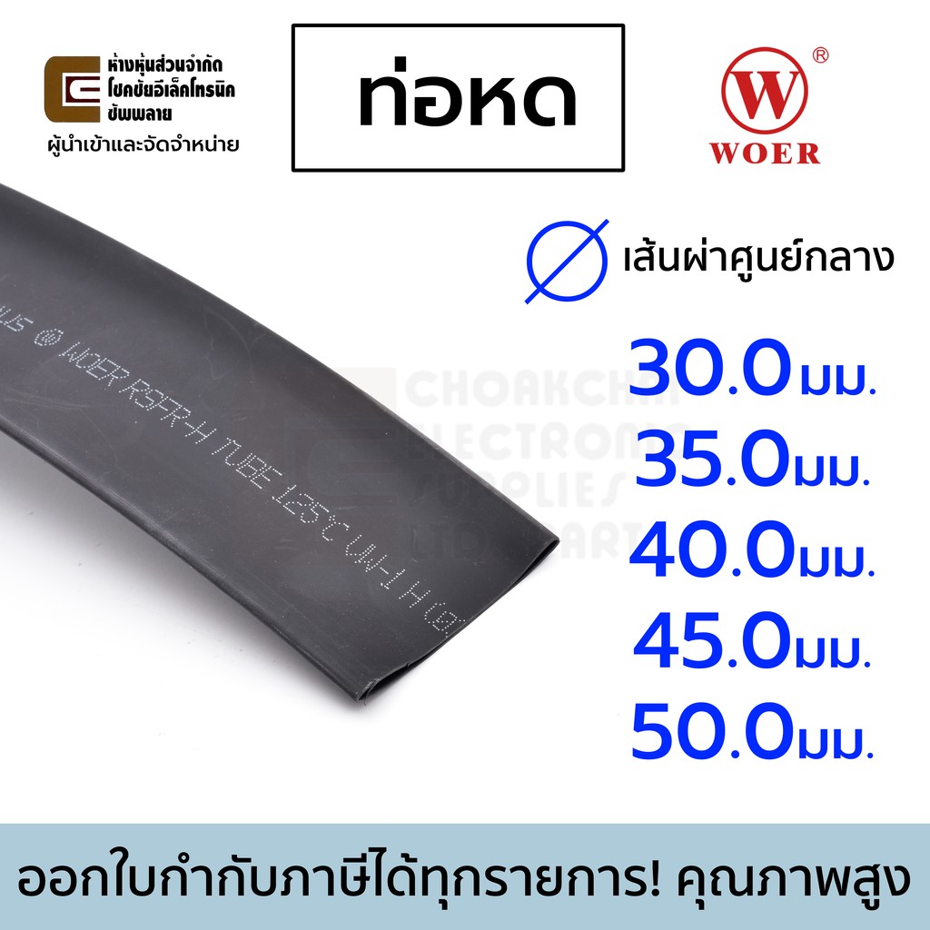 Woer ท่อหด ขนาด 30/35/40/45/50มม มีหลายสีให้เลือก ยาว 1เมตร รุ่น RSFR-H