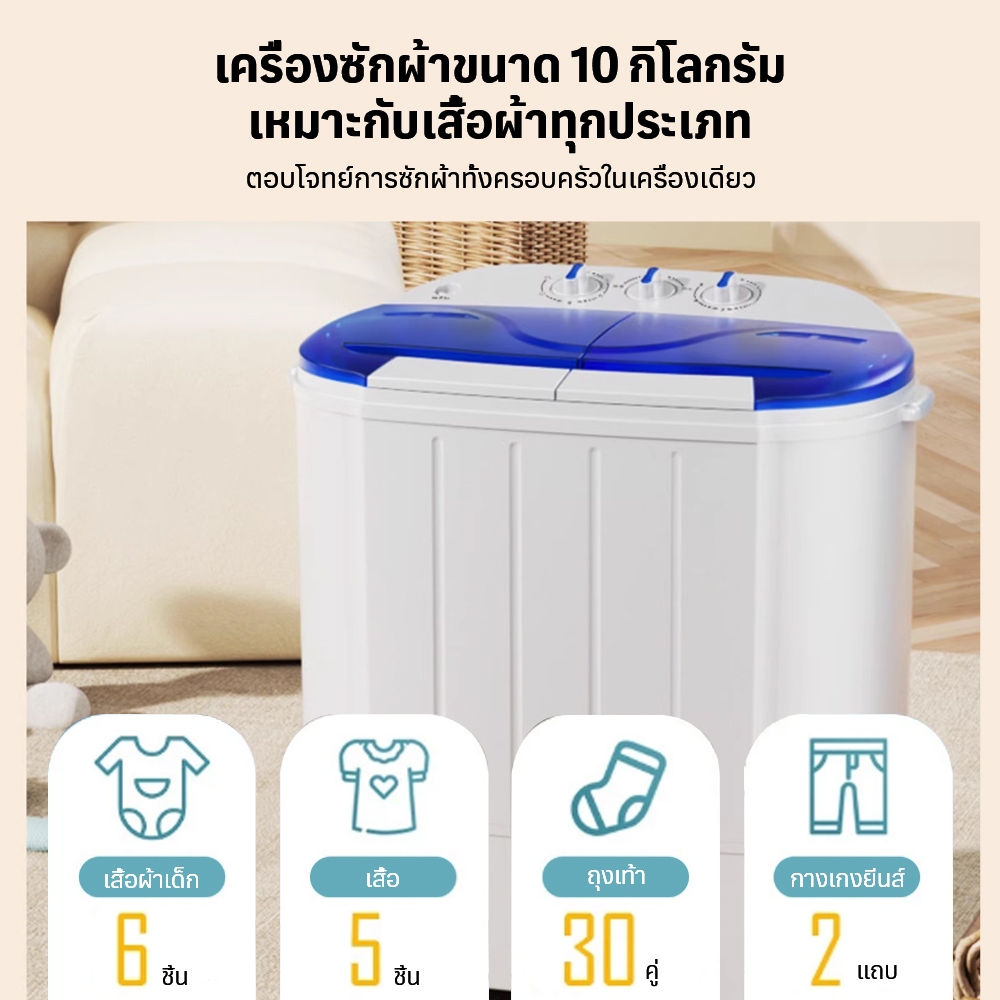 เครื่องซักผ้ามินิฝาบน 2 ถัง นาดความจุ 10KG ฟังก์ชั่น 2 In 1 ซักและปั่นแห้งในตัวเดียวกัน