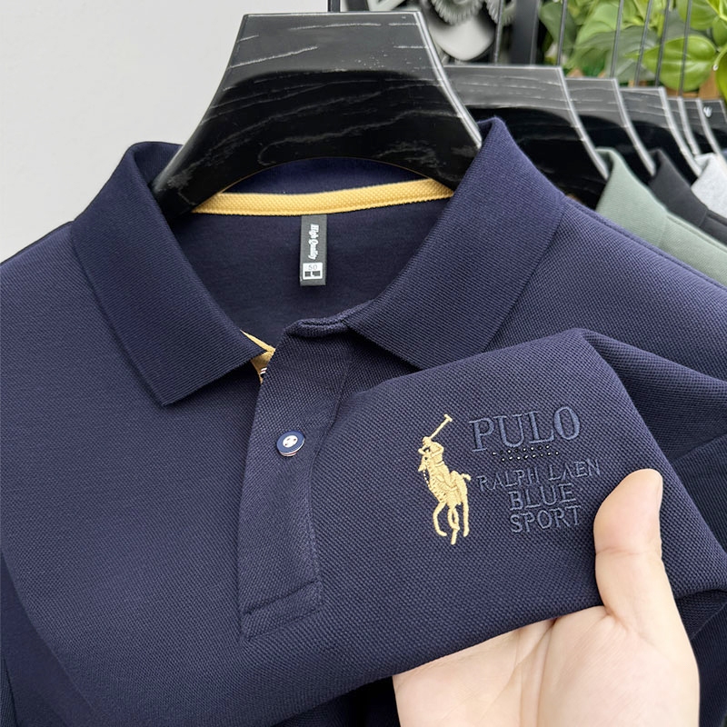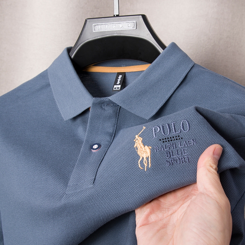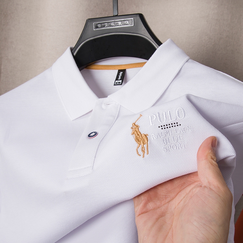 black Dark เสื้อโปโลทรงหลวมสุดเทรนด์ไหล่ตรง เสื้อเชิ้ตแขนสั้นอเนกประสงค์พร้อมดีไซน์ปัก เสื้อโปโลลำลองใส่สบายในฤดูร้อน