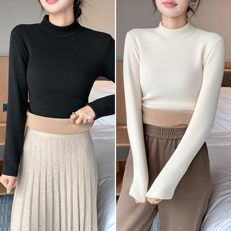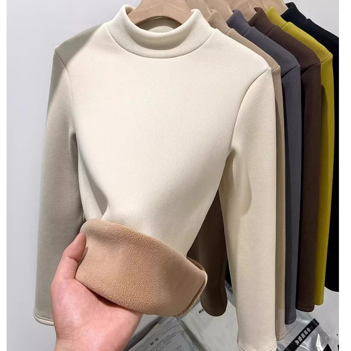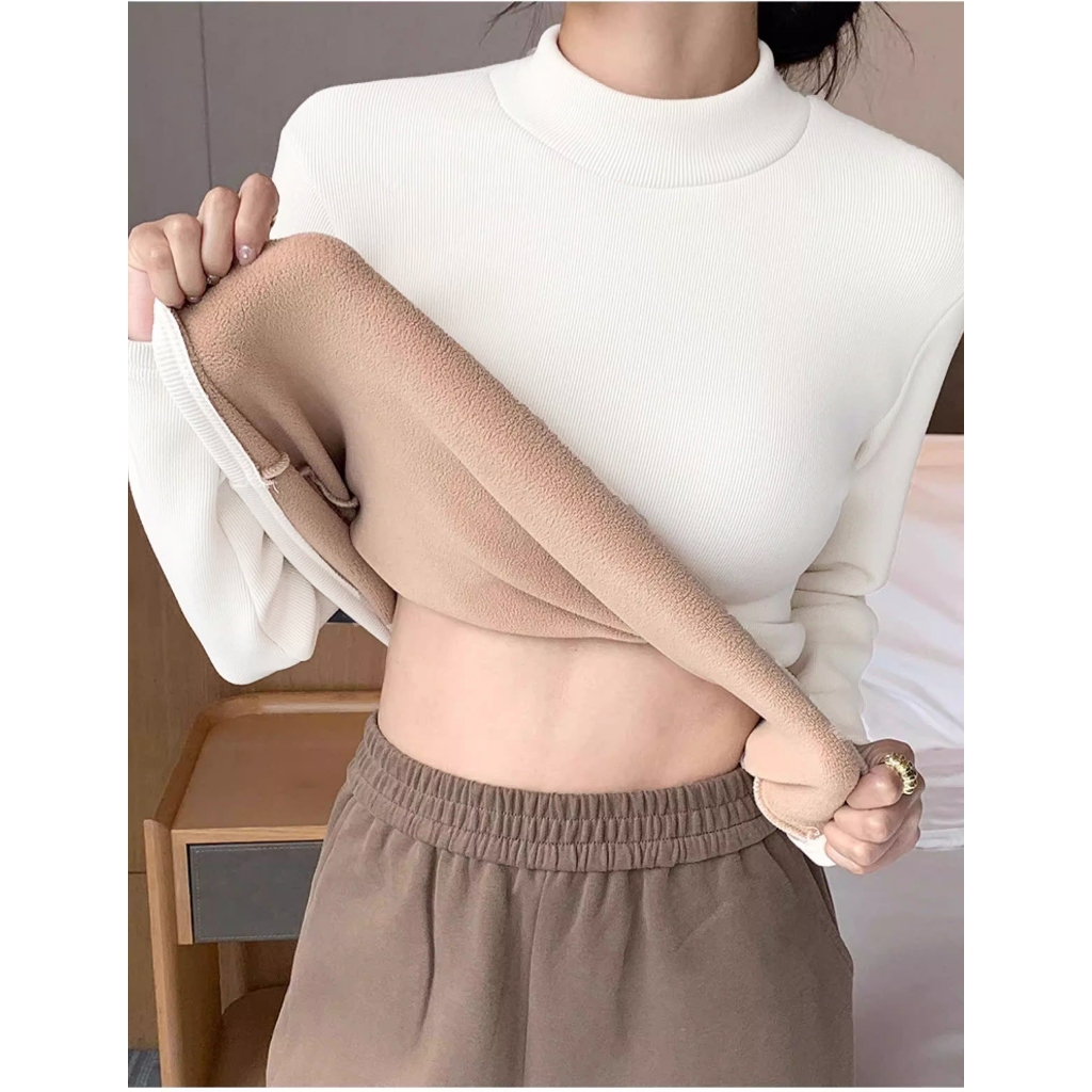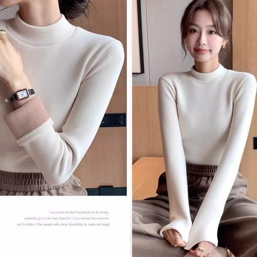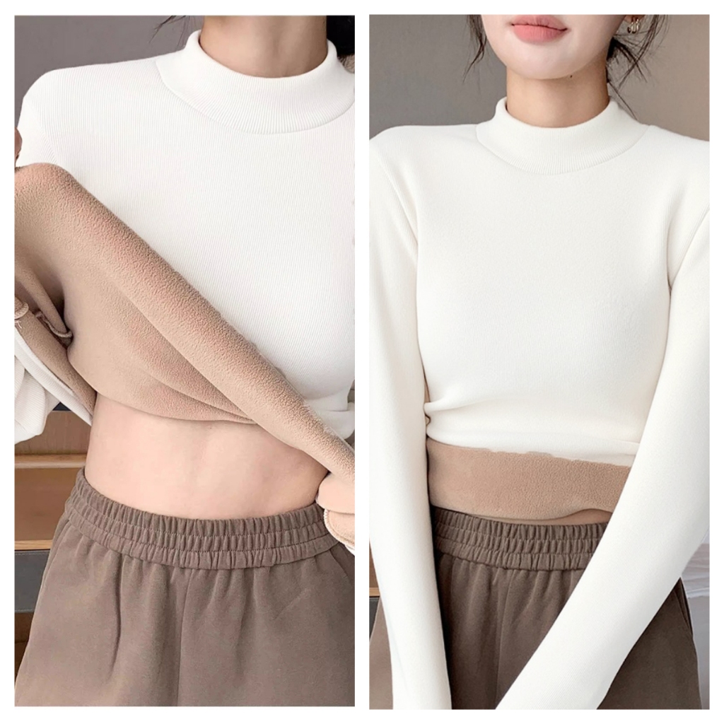 Plus size~Half-high neck undershirt เสื้อผ้าระบายความร้อนขนแกะหนา เสื้อผ้าระบายความร้อนขั้นพื้นฐานที่ทันสมัยและหลากหลาย