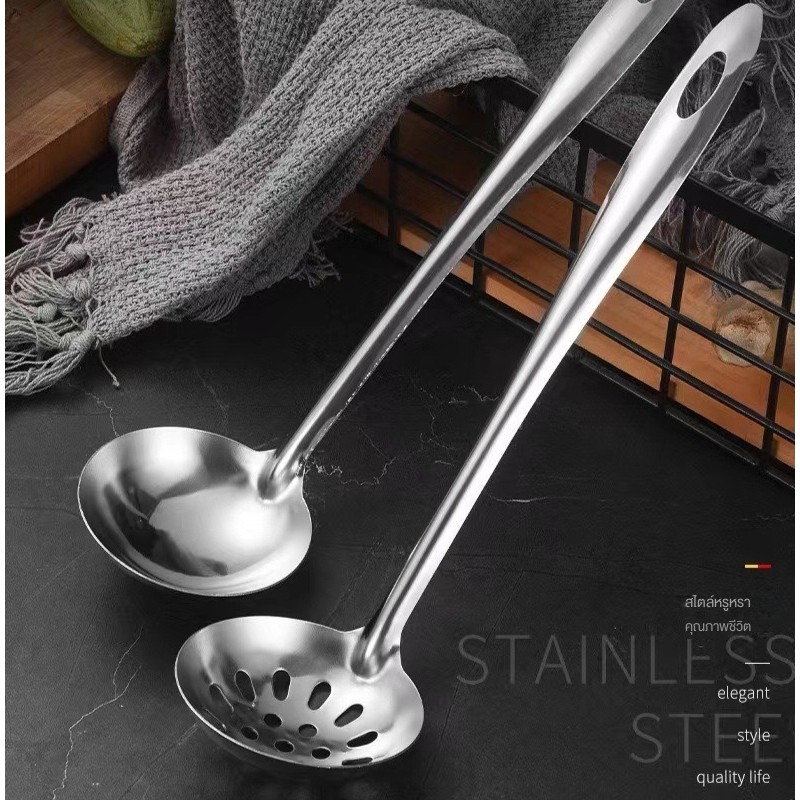 สแตนเลสด้ามยาวซุปเชลล์ช้อนหม้อไฟไม่มีแม่เหล็ก ครัวในครัวเรือน ช้อนหม้อไฟด้ามยาว ซุปซุปซุปซุปเครื่องมือทำอาหารรั่ว