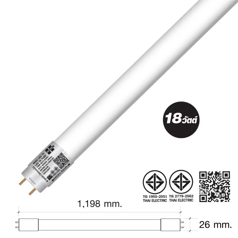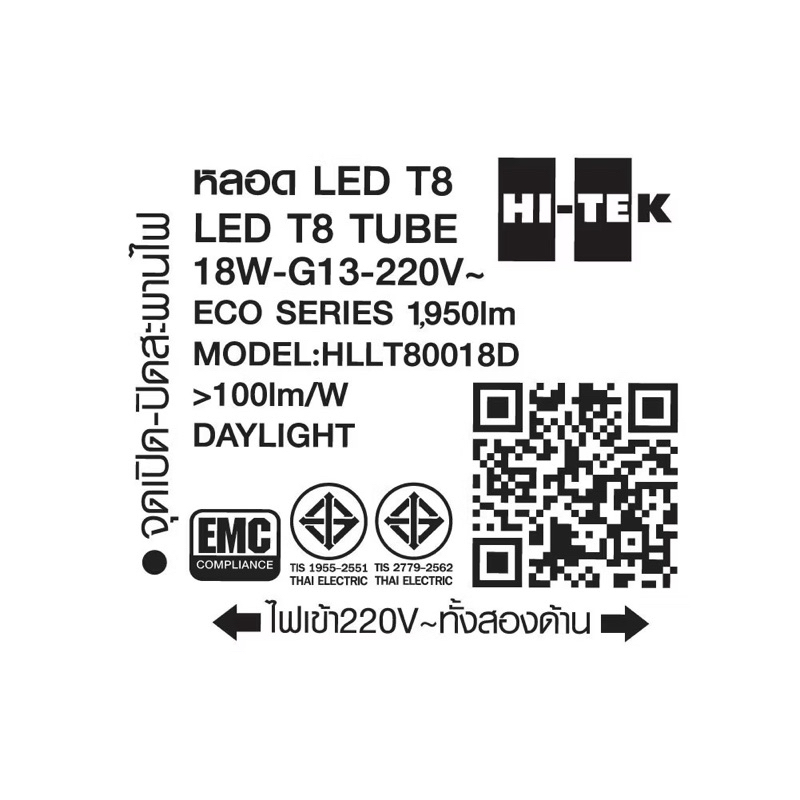 HI-TEK หลอด LED T8 อีโค่ ซีรี่ส์ ขั้วG13 แบบเข้าไฟ 2 ด้าน แสงขาว ขนาด 18W (สุดคุ้ม!! ) ชุด 3 ดวง/5 ดวง