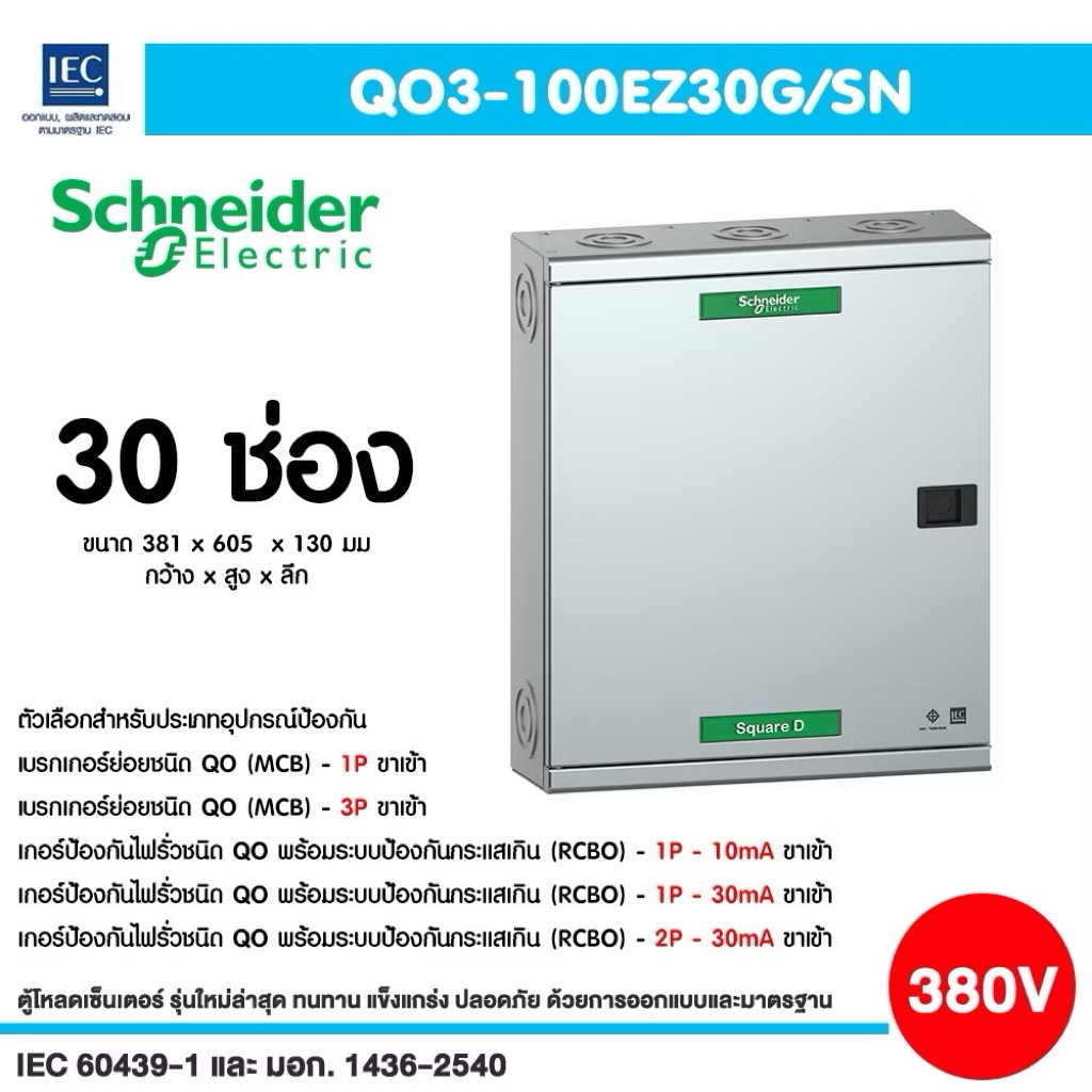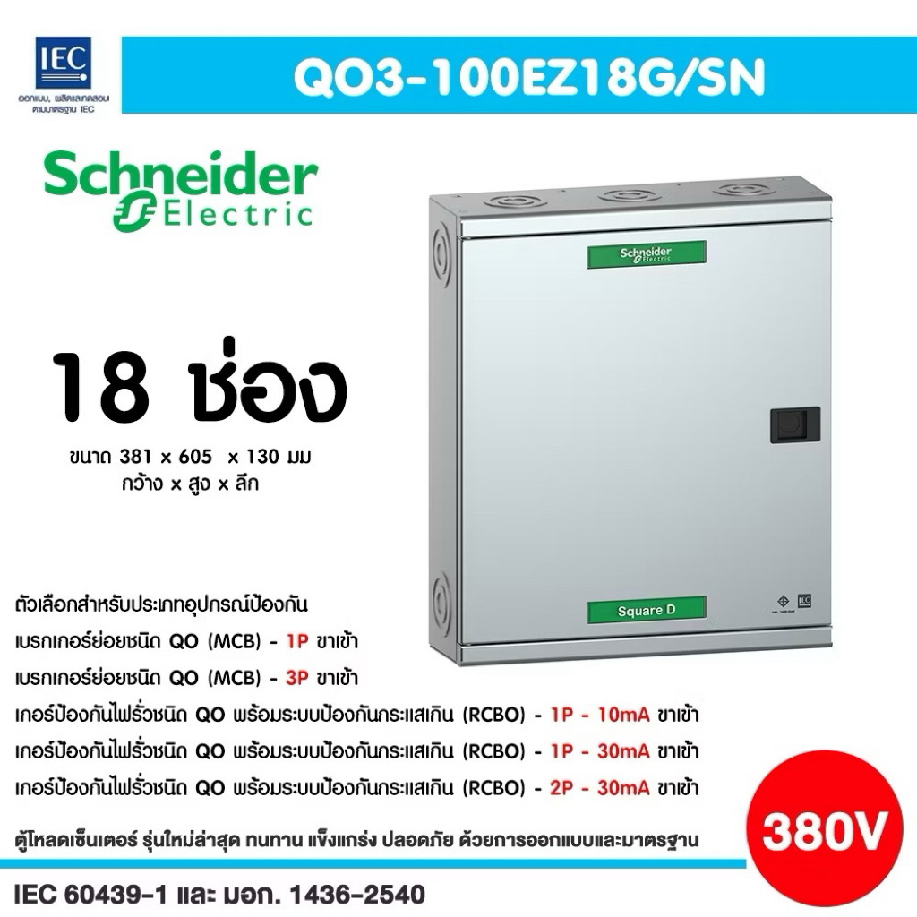 Schneider ตู้โหลดเซ็นเตอร์ ไฟฟ้า3เฟส 4 สาย แรงดัน 240/415VAC พร้อมกราวด์บาร์ รองรับเมนเบรคเกอร์ 100A ตู้ปล่าว