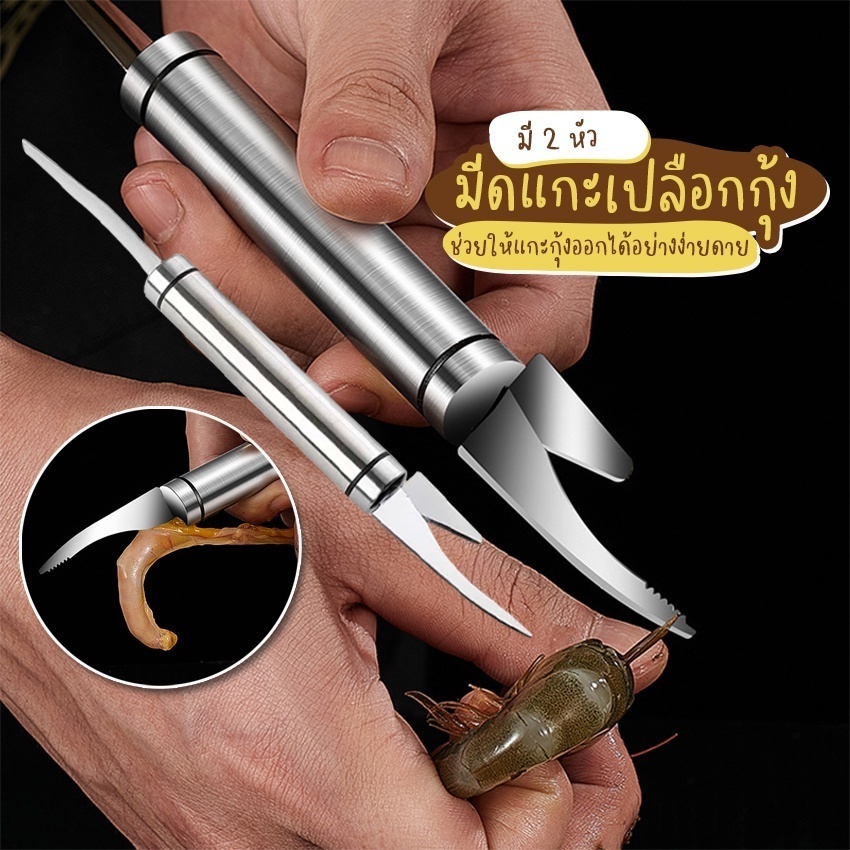 สแตนเลสมีดปอกเปลือกกุ้งอเนกประสงค์, มีดถอดเส้นกุ้ง, มีดเปิดพุงปลาสี