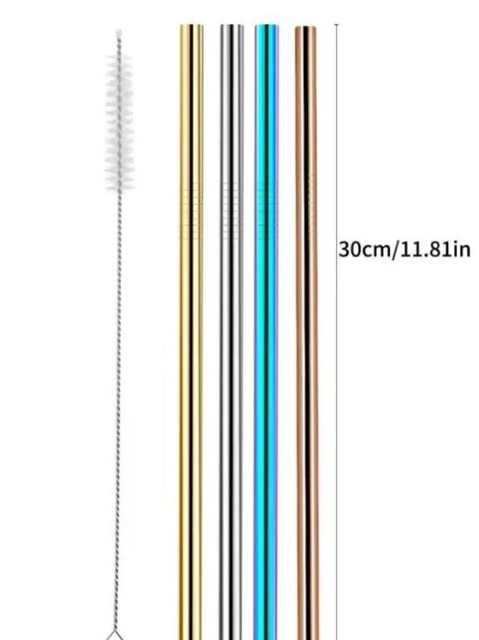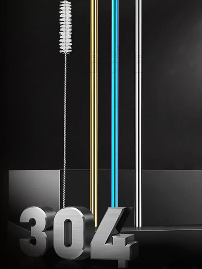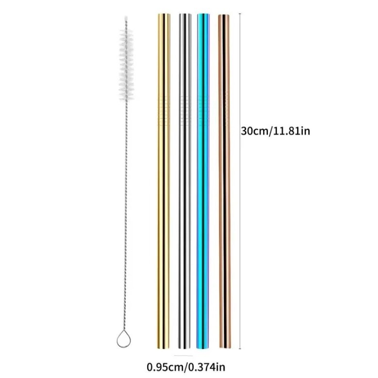 304 หลอดสแตนเลส ชุดฟางสแตนเลส 4 สีพร้อมแปรงทำความสะอาดเหมาะสำหรับถ้วยน้ำความจุสูงเป็นมิตรกับสิ่งแวดล้อมและพกพา