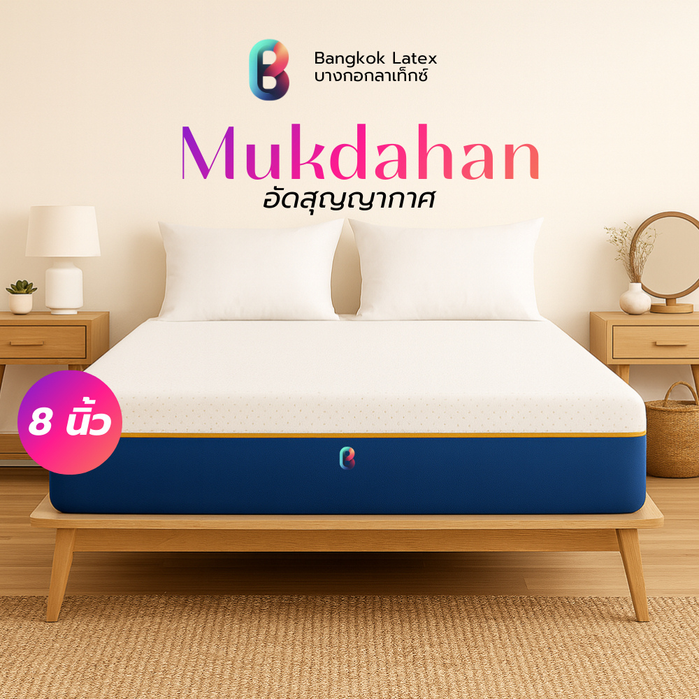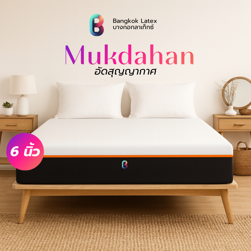 [อัดสุญญากาศ] Bangkok Latex ที่นอนยางพารา รุ่น Mukdahan รองรับสรีระ ลดแรงกดทับขณะพลิกตัว 6นิ้ว และ 8นิ้ว