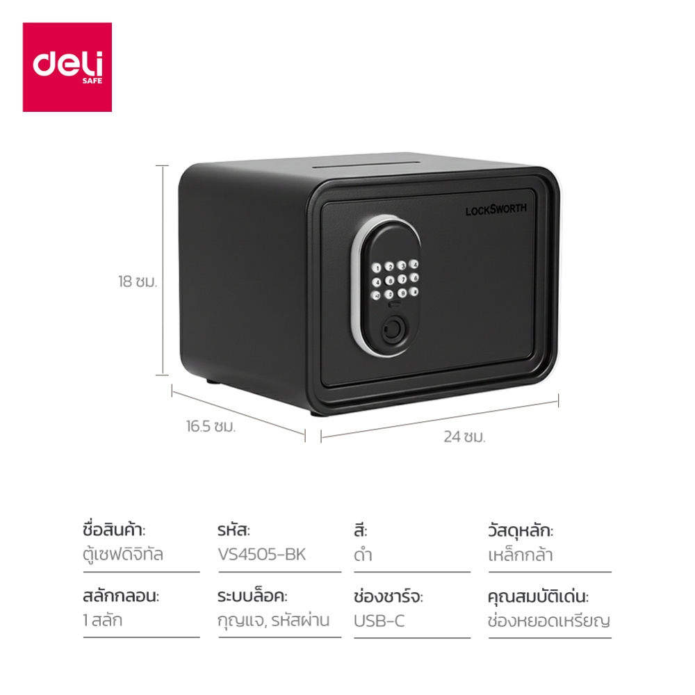 Deli ตู้นิรภัย ตู้เซฟ ล็อคระบบกุญแจและรหัส ใช้ได้ยาวนาน มาตฐานระบบความปลอดภัย Safe box